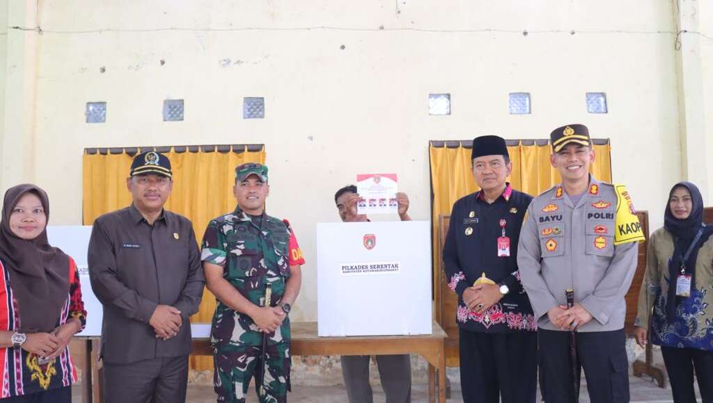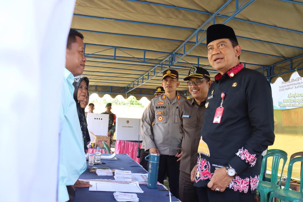 KOTAWARINGIN BARAT,ikagawanews.id – Kapolres Kotawaringin Barat AKBP Bayu WIcaksono, SH.,SIK.,MSi., bersama Pj Bupati Kotawaringin Barat Dr. Drs. Budi Santosa, MSi dan Dandim 1014 Pangkalanbun Letkol Arm Yoga Permana, S.Sos memonitoring pelaksanaan Pemungutan Suara Pemilukades Di Tempat Pemungutan Suara (TPS) Di Kab. Kotawaringin Barat,Kamis 26 Oktober 2023 Jam 10.00 Wib.