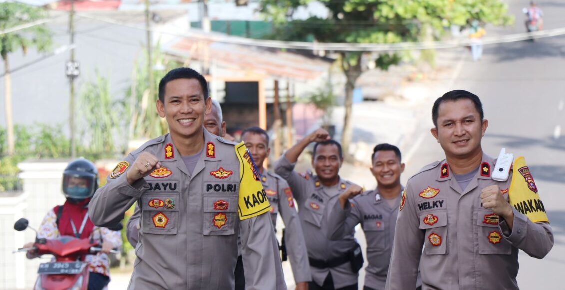 KOTAWARINGIN BARAT,ikagawanews.id – Kapolres Kotawaringin Barat AKBP Bayu Wicaksono, SH,SIK.,M.Si beserta Wakapolres dan PJU melaksanakan olahraga jalan kaki biasa disebut Kotawaringin Barat Jalan Bareng Komandan (KOBAR JABADAN) dengan route Mapolres-Istana Kuning-Ps Indra Kencana-SDN 1 Sidorejo-Mapolres,Kamis 9 Februari 2023.