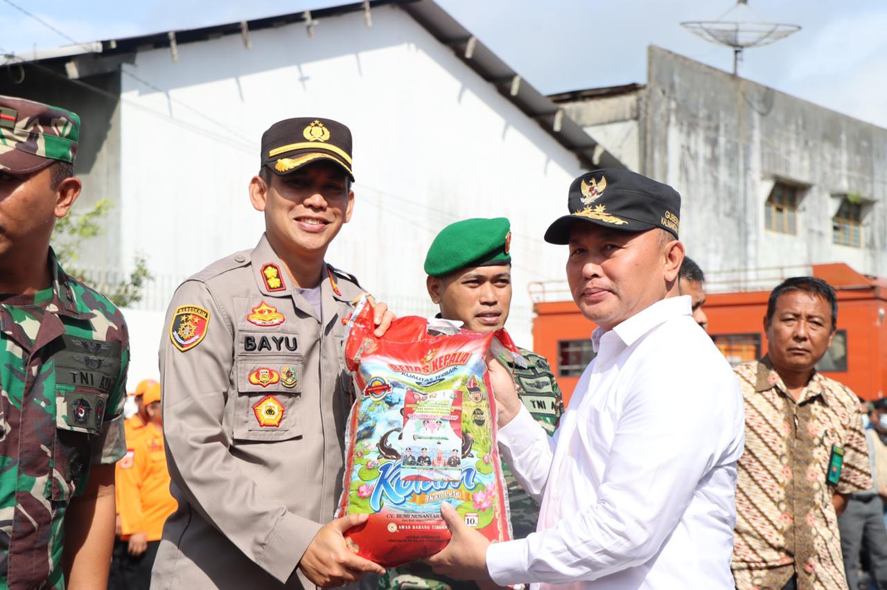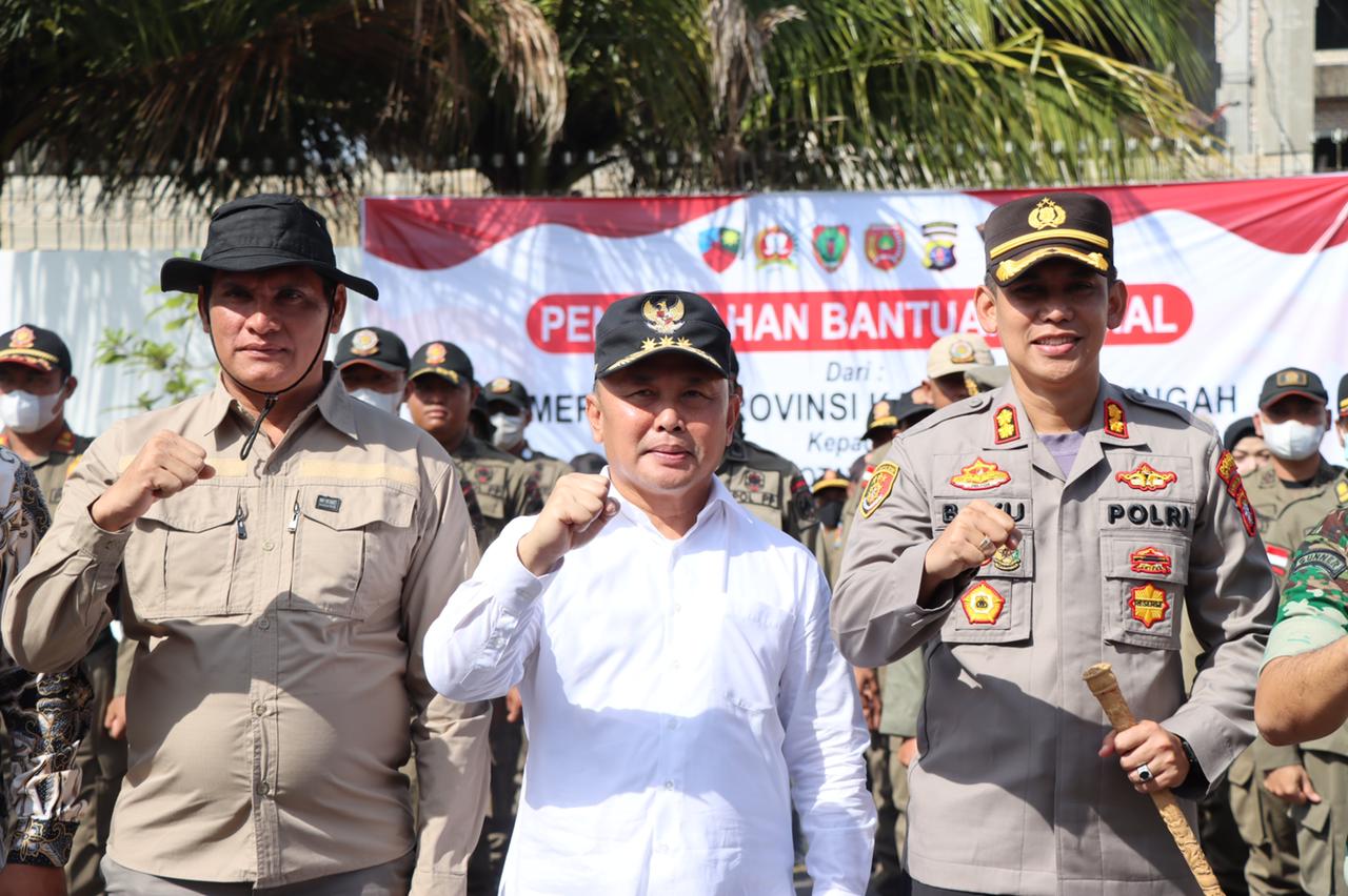 Kapolres Kobar Bersama Unsur Forkopimda Kabupaten Kotawaringin Barat Ikuti Apel Penyerahan Bantuan Sosial kepada TNI Polri