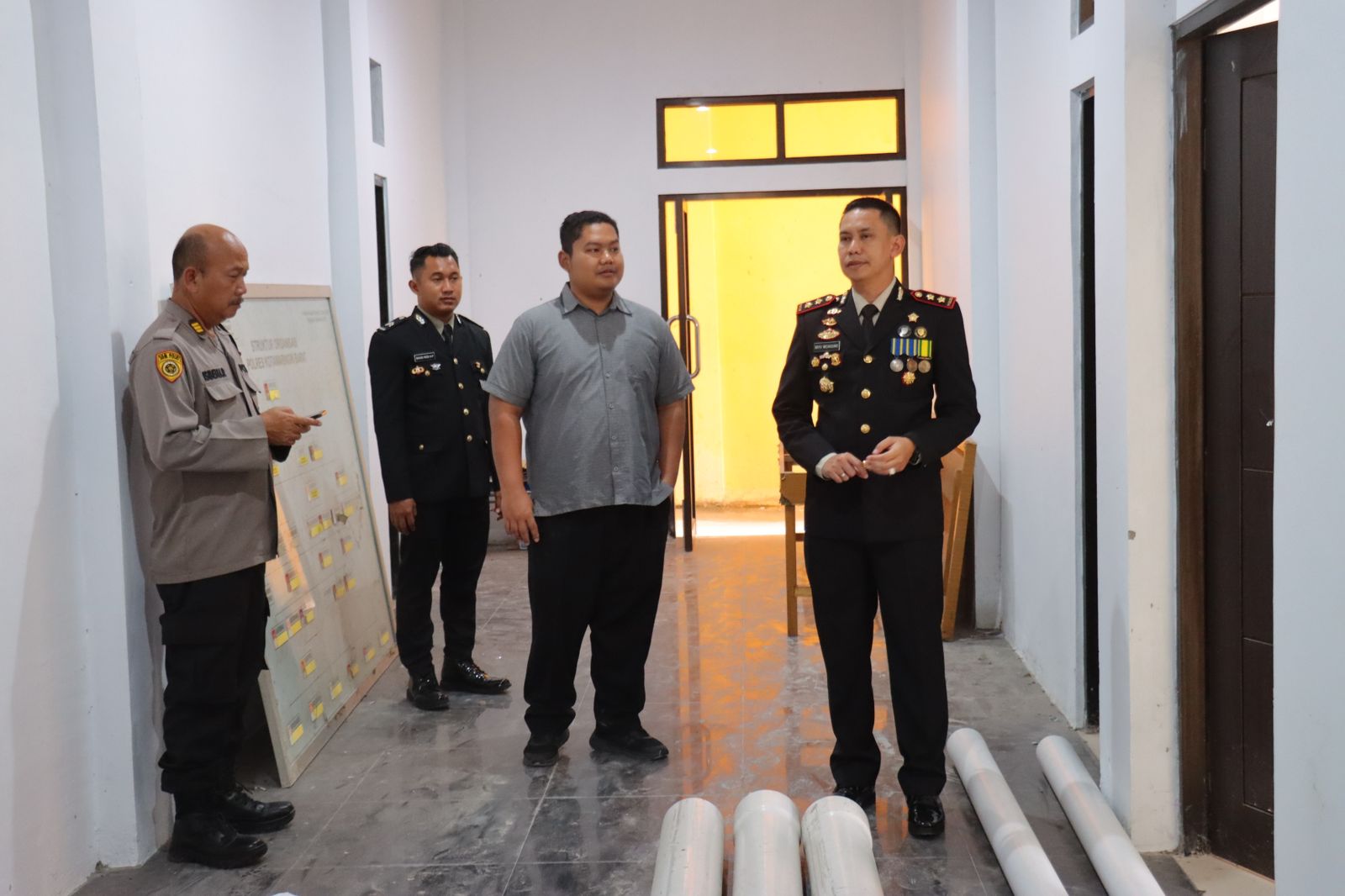 Kegiatan yang diinisiasi oleh Kapolres Kotawaringin Barat AKBP BAYU WICAKSONO, S.H., S.I.K., M.S.i. Menyampaikan pembagaian Ruangan yang akan ditempati oleh Satreskrim dan Satnarkoba Polres Kotawaringin Barat, agar dapat semakin semangat dalam melaksanakan kegiatan dinas dan dapat menggunakan fasilitas yang tersedia secara optimal.
