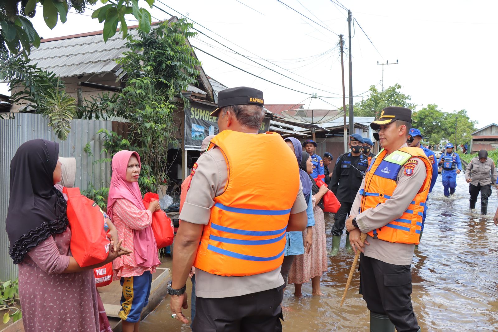 Kapolres Kobar Dampingi Kapolda Kalimantan Tengah Tinjau Pemukiman Warga Yang Terdampak Banjir Dan Salurkan Bantuan Sosial