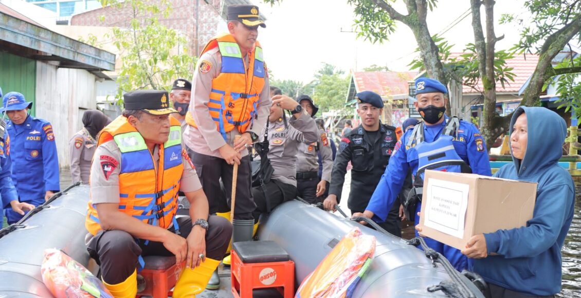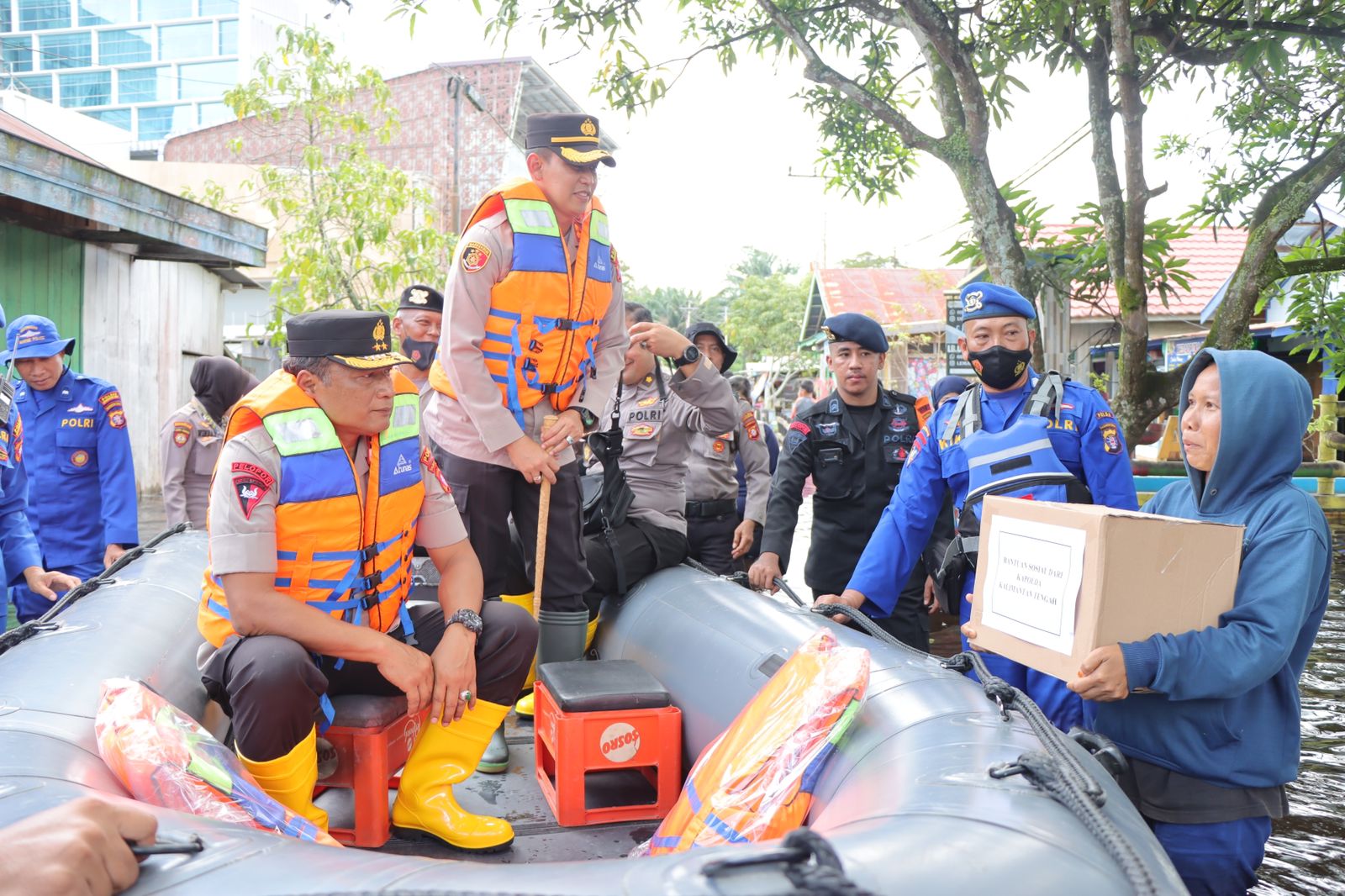 Dalam pelaksanaannya Bapak Kapolda Kalteng menggunakan Rubber Boat untuk menjangkau pemukiman warga yang terkena banjir setinggi 60 Cm dengan menyapa dan memberikan support agar tetap sabar dan menjaga kesehatan.