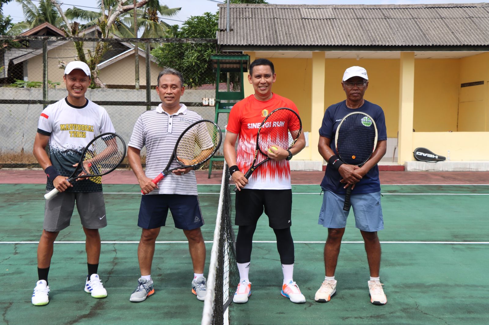 Kapolres Kobar Dampingi  Karorena Polda Kalteng Melaksanakan Kotawaringin Barat Bermain Tenis di Lapangan SIINERGI