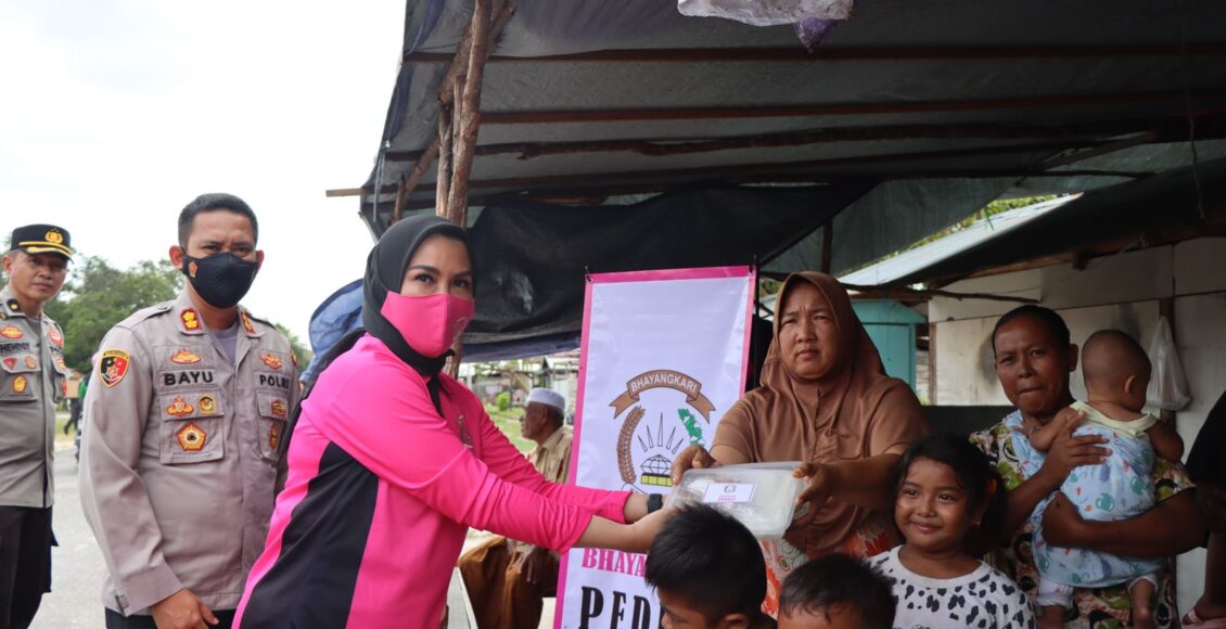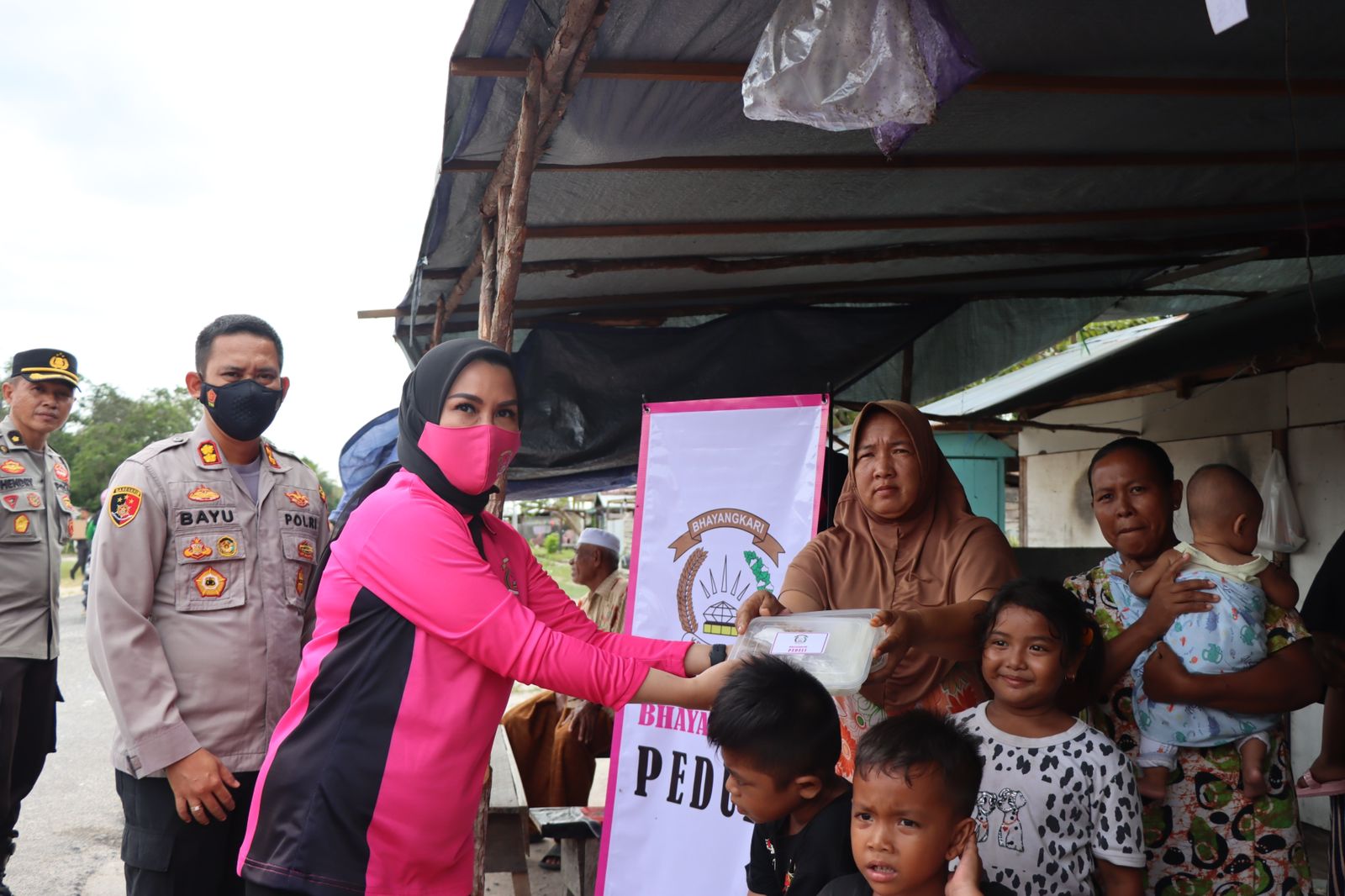 Kapolres mengatakan, kegiatan pemberian bantuan sosial ini dilaksanakan sebagai bentuk kepedulian Polri bersama bhayangkari terhadap masyarakat yang terdampak banjir.