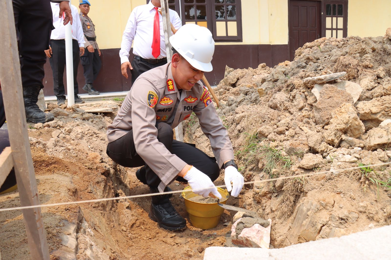 KOTAWARINGIN BARAT,ikagawanews.id – Kapolres Kotawaringin Barat AKBP Bayu Wicaksono SH. SIK . M.,Si. melakukan peletakan batu pertama sebagai tanda dimulainya pembangunan Gedung SPKT dan Aula Polsek Pangkalan Banteng,Jumat 29 September 2023 pukul 10.00 wib.