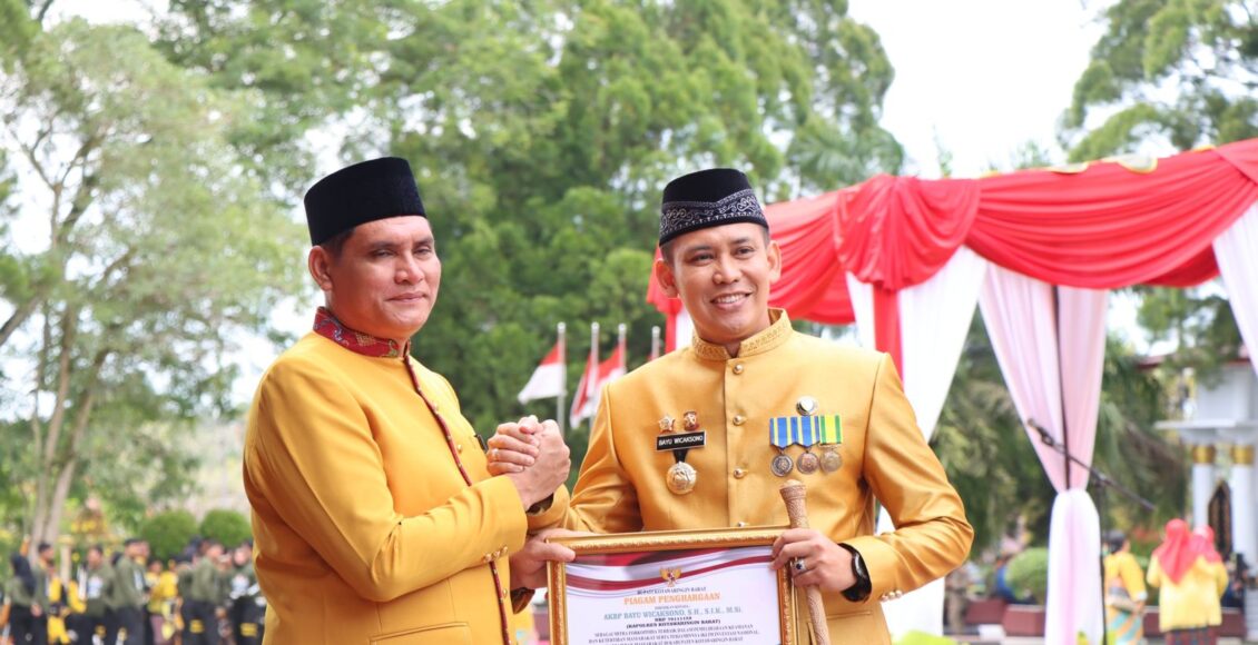 Dalam kegiatan tersebut, Kapolres Kotawaringin Barat mendapatkan Piagam Penghargaan dari Kabupaten Kotawaringin Barat melalui Penjabat Bupati atas prestasi Mitra Forkopimda Tebaik Dalam Pemeliharaan Kamtibmas serta Terjaminnya Investasi Nasional, Daerah dan Masyarakat di Kabupaten Kotawaringin Barat.(Red/Hum)