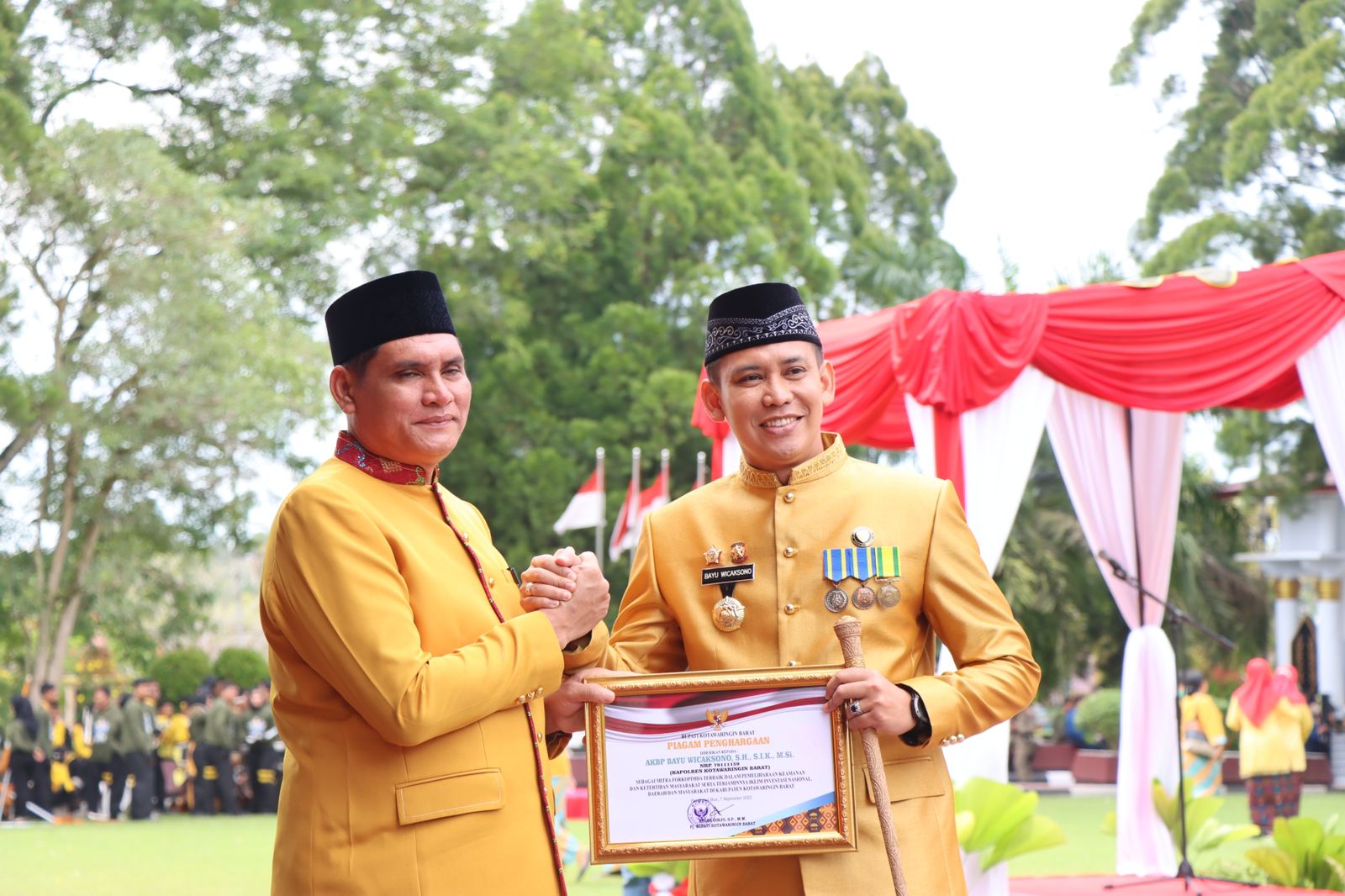 KOTAWARINGIN BARAT,ikagawanews.id – Kapolres Kotawaringin Barat AKBP Bayu Wicaksono,SH.,SIK.,M.Si didampingi Ketua Bhayangkari Cabang Kotawaringin Barat Ny.Wina Bayu Wicaksono menghadiri Hari Ulang Tahun Kabupaten Kotawaringin Barat ke 63 di Kantor Pemda Kabupaten Kotawaringin Barat,Senin 3 Oktober 2022.