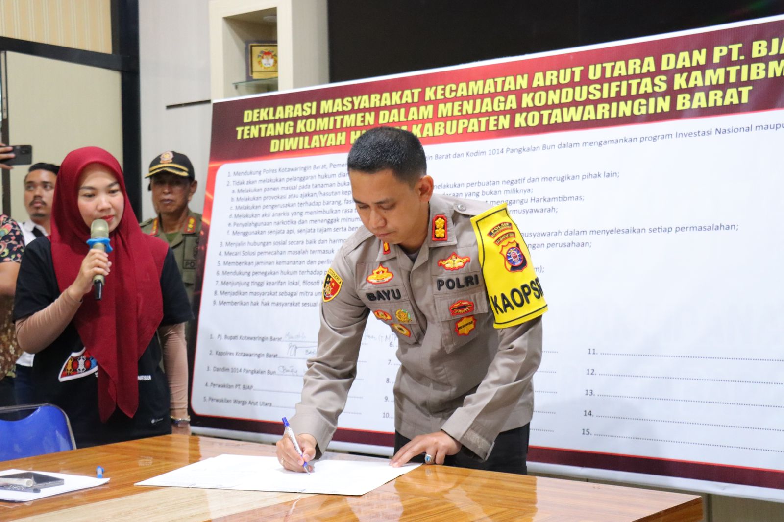 Kapolres Kotawaringin Barat AKBP Bayu Wicaksono, S.H., S.I.K., M.Si., menerangkan bahwa kegiatan ini bertujuan untuk mencapai kesepakatan bersama melalui jalur musyawarah.