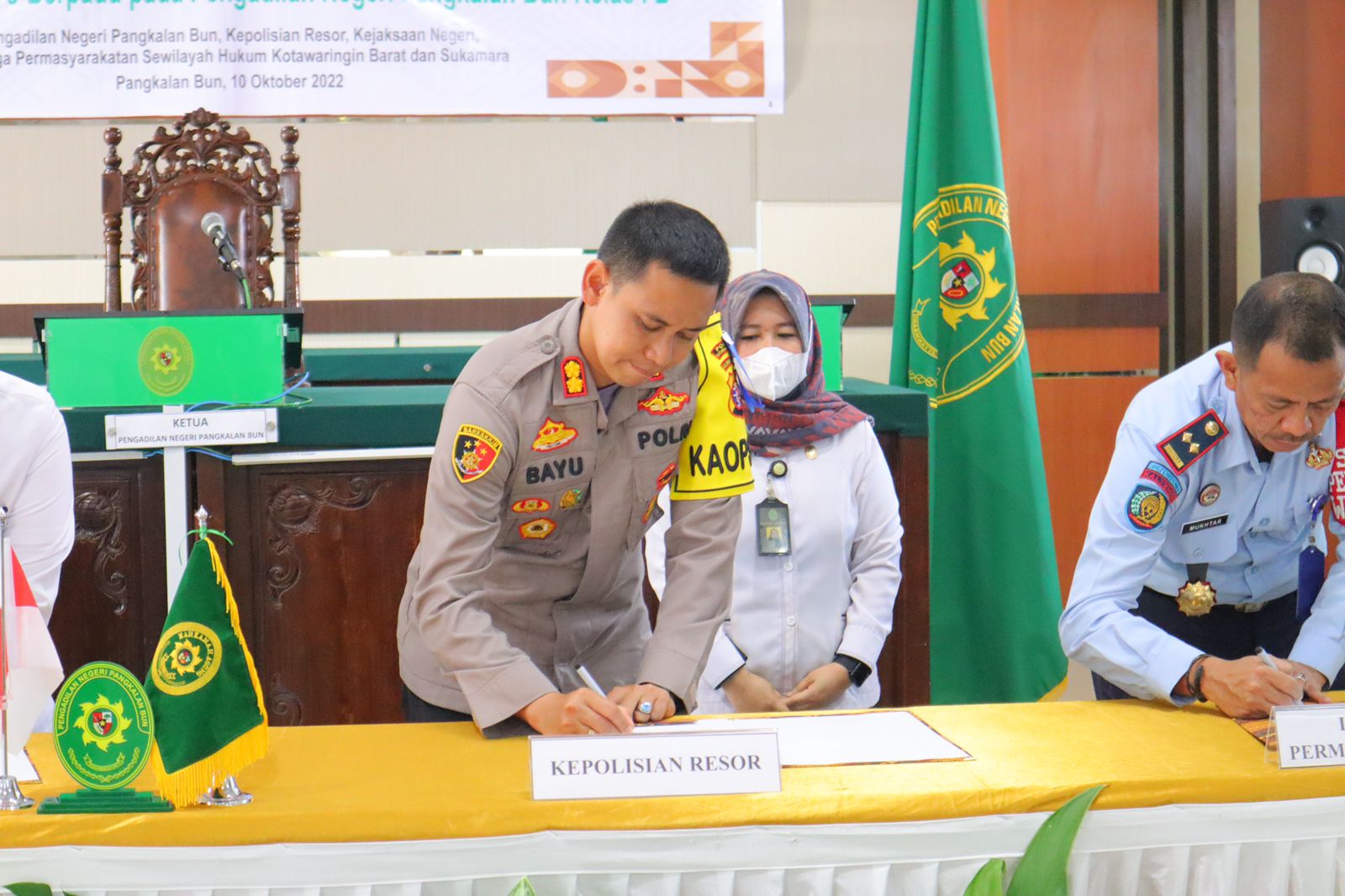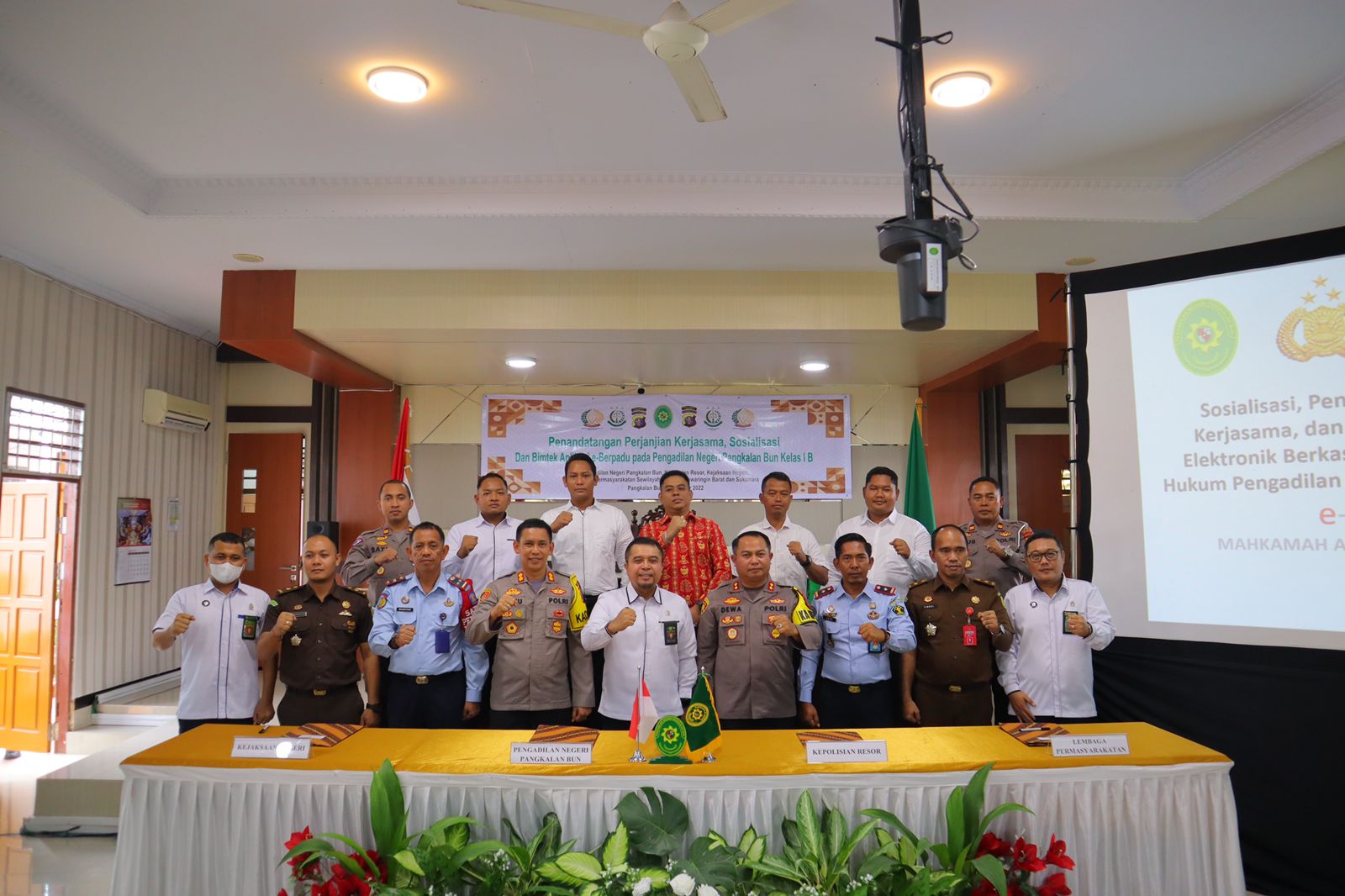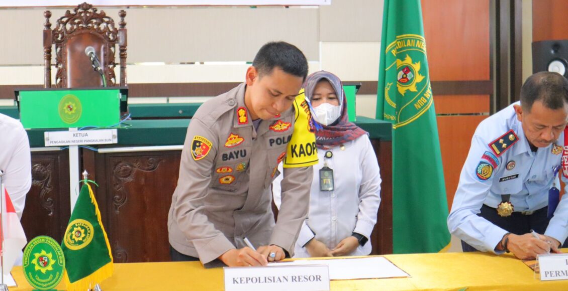 KOTAWARINGIN BARAT,ikagawanews.id – Kapolres Kotawaringin Barat AKBP Bayu Wicaksono,SH.,SIK.,M.Si menghadiri sosialisasi dan penandatanganan Perjanjian Kerjasama antara Pengadilan Negeri Polres, Lapas dan Kejaksaan tentang Aplikasi Elektornik Berkas Pidana Terpadu E-Berpadu di Kantor Pengadilan Negeri Pangkalan Bun,Senin 10 Oktober 2022.