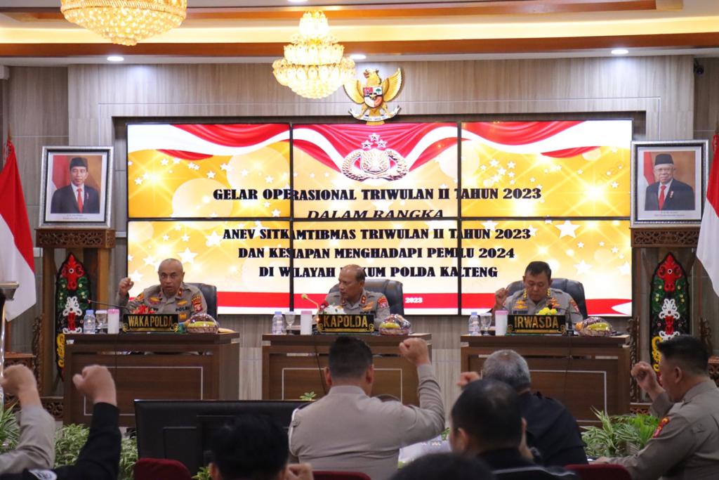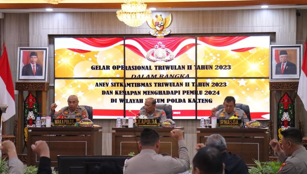 KALTENG,ikagawanews.id – Kapolres Kotawaringin Barat AKBP Bayu Wicaksono S.H., S.I.K., M.Si beserta Kapolres Jajaran Polda Kalteng mengikuti Gelar Operasional TW II TA 2023 di Aula Arya Dharma Polda Kalteng,Kamis 27 Juli 2023 pukul 09.00 Wib
