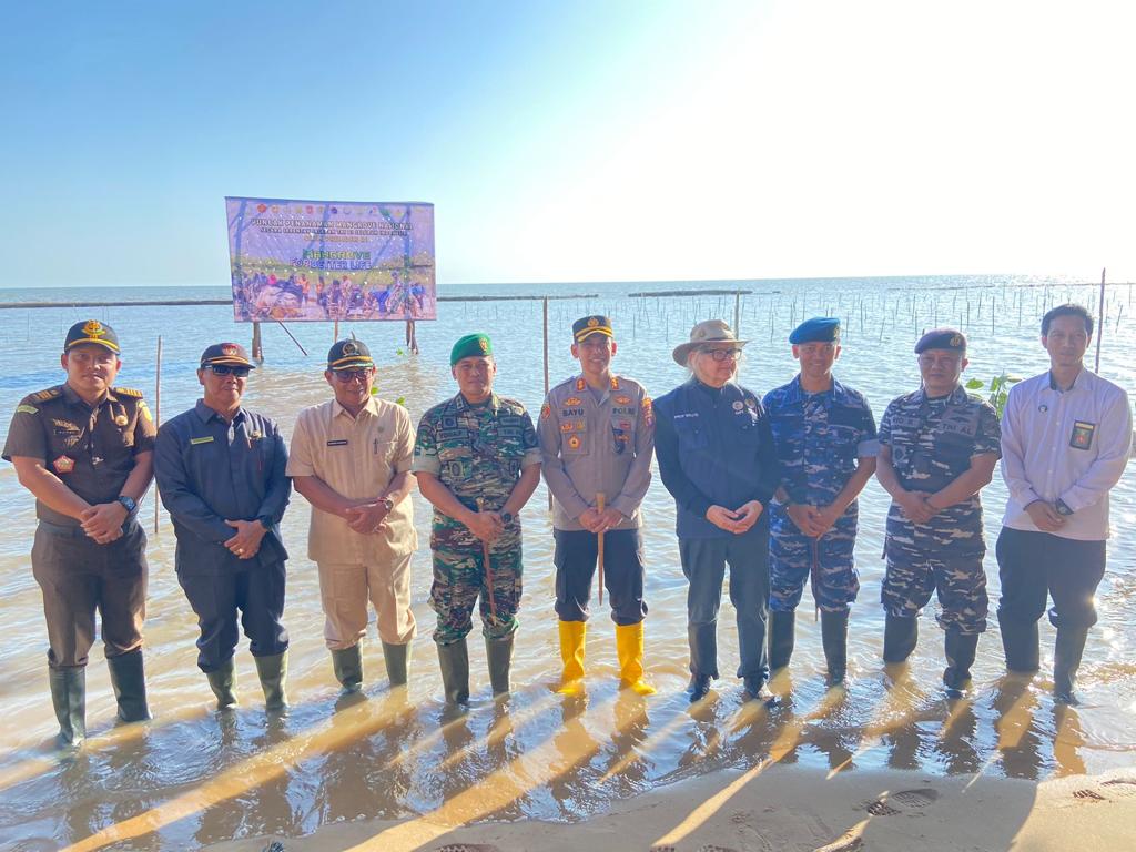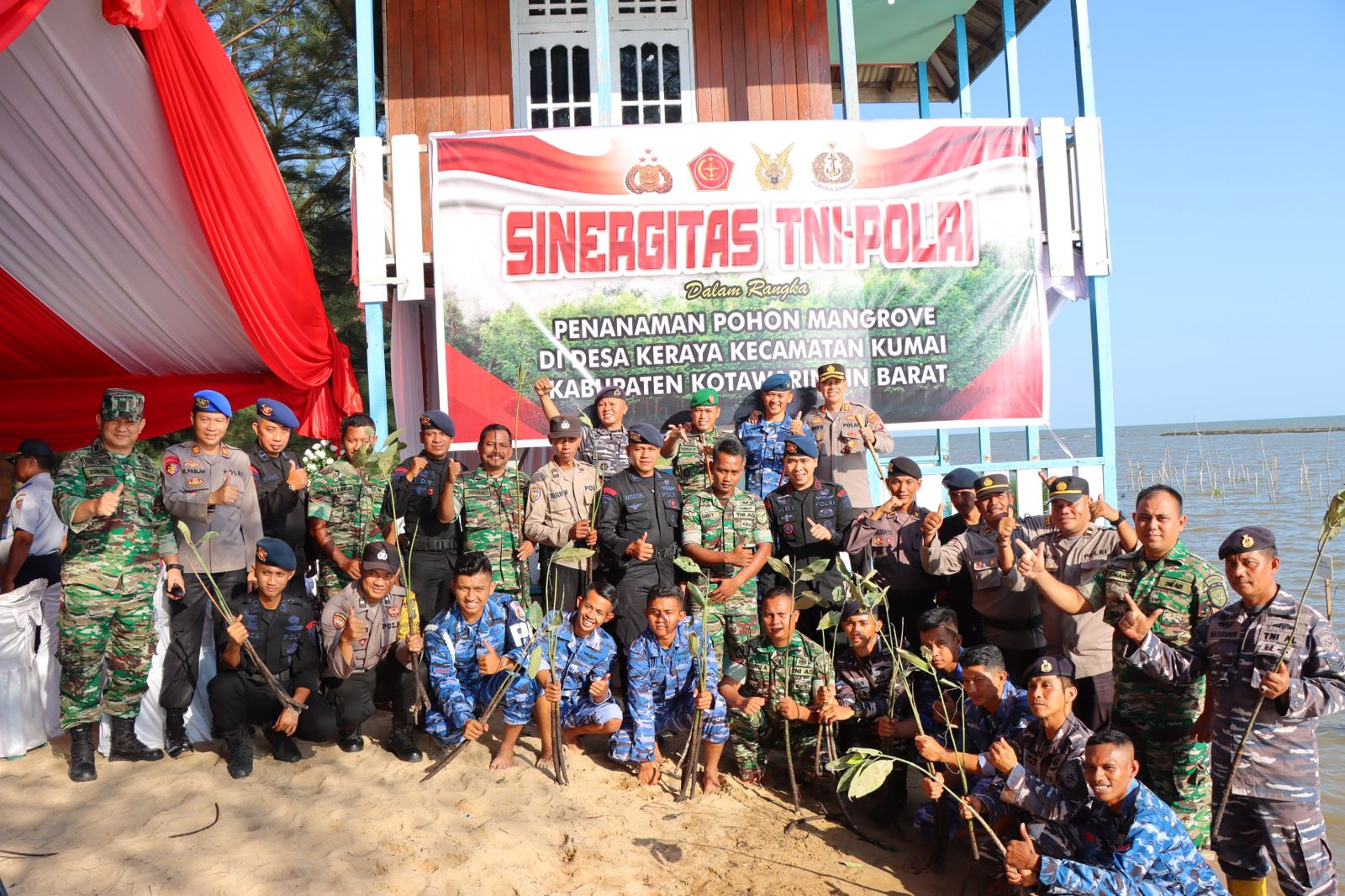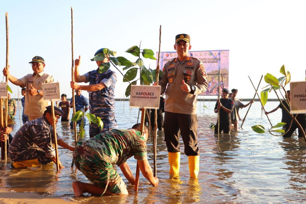Kapolres Kobar Ikuti Penanaman Bibit Pohon Mangrove Bersama Unsur Forkopimda Dan TNI di Pantai Desa Keraya