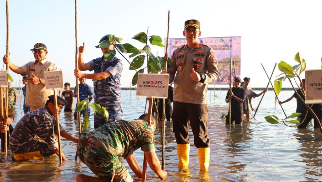 KOTAWARINGIN BARAT,ikagawanews.id – Pelaksanakan kegiatan penanaman bibit pohon mangrove oleh Kapolres Kotawaringin Barat AKBP Bayu Wicaksono, S.H., S.I.K., M.Si bersama unsur Forkopimda dan TNI,  bertempat di Pantai Desa Keraya, Kecamatan Kumai, Kabupaten Kotawaringin Barat   Senin  15 Mei 2023 sekira jam 17.00 WIB.