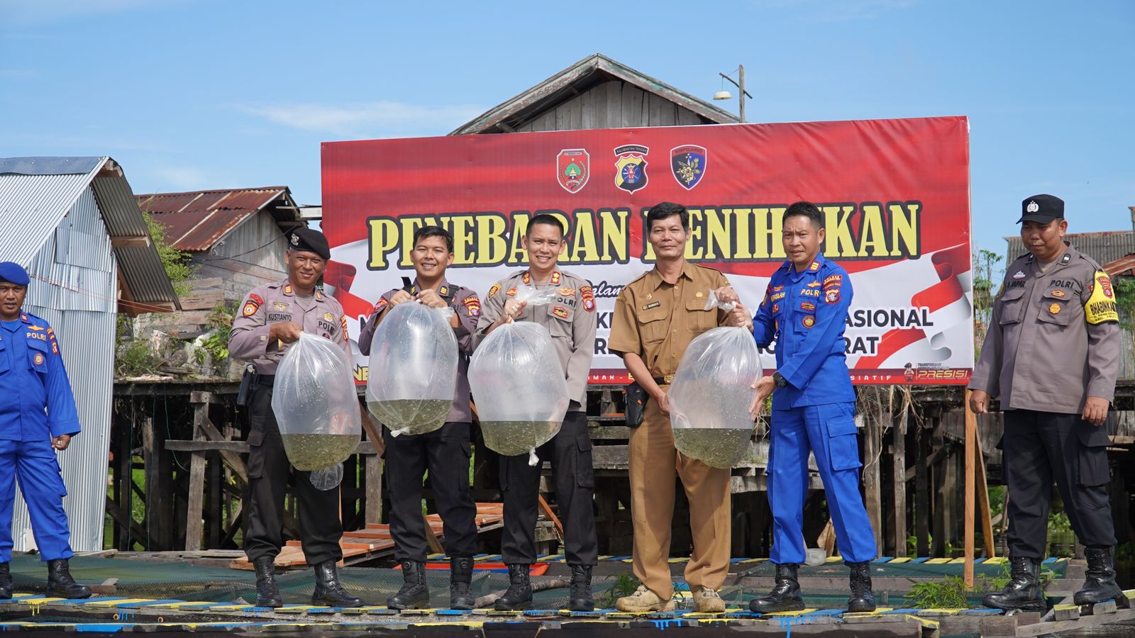 Dalam kegiatan ini, Kapolres didampingi oleh Perwakilan Kadis Perikanan, Kabagops, Kasatpolairud dan Kasatsamapta untuk menebarkan 2000 ekor bibit ikan Nila.