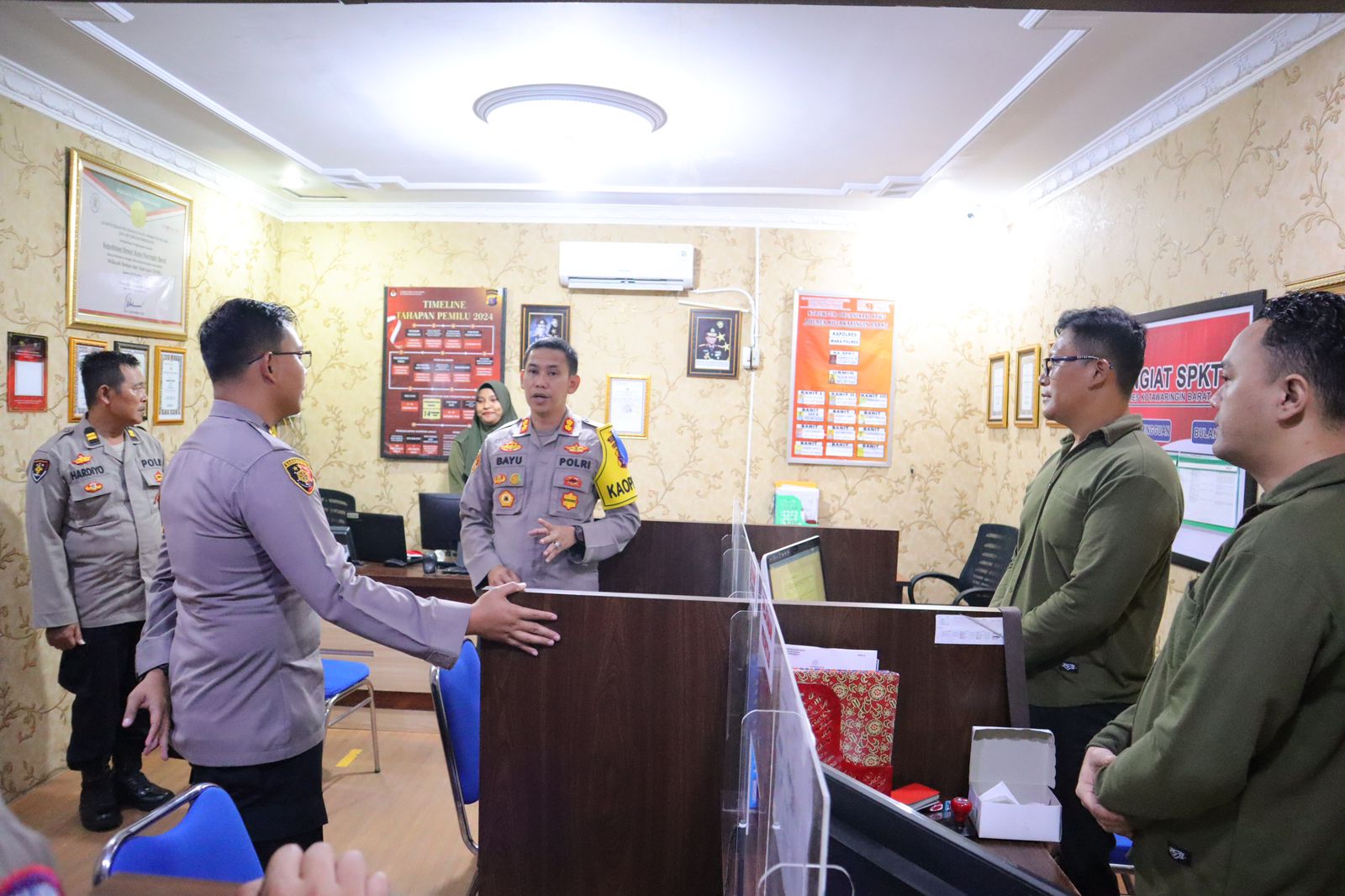 Oleh sebab itu pada hari Rabu 08 Februari 2023 pukul 09.00 wib Kapolres Kotawaringin Barat AKBP Bayu Wicaksono,SH.,S.I.K.,M.S.i melaksanakan pengecekan pelayanan publik masyarakat yang berada di polres kobar dan satpas satlantas polres kobar Adapun pengecekan antara lain,ruangan spkt,pelayanan SKCK,dan satpas satlantas dengan Tujuannya untuk memastikan pelayanan publik berjalan dengan baik.