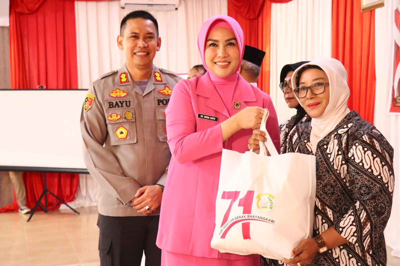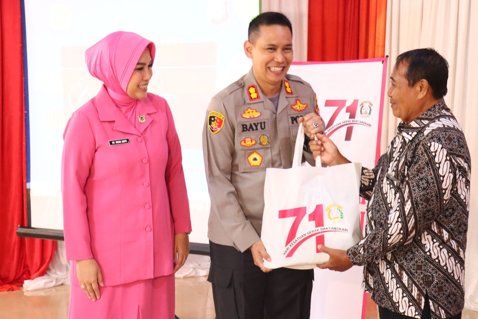 Sebagai wujud apresiasi kepada Purnawirawan Polri dan Warakawuri Polres Kotawaringin Barat, Kapolres Kotawaringin Barat AKBP Bayu Wicaksono, S.H., S.I.K., M.Si. dengan di dampingi Ny. Wina Bayu Wicaksono memberikan bingkisan.