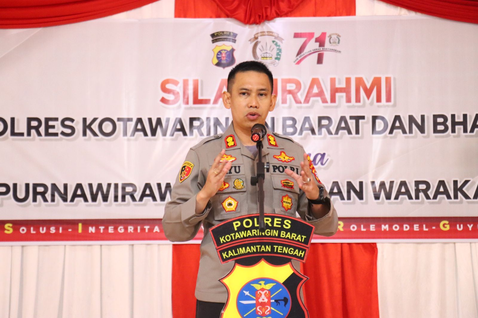 Kapolres Kotawaringin Barat AKBP BAYU WICAKSONO, S.H., S.I.K., M.Si mengatakan bahwa pelaksanaan ramah tamah ini dilaksanakan sebagai bentuk penghormatan dan penghargaan terhadap Purnawirawan Polri dan Warakawuri Polres Kotawaringin Barat dalam rangka peringatan hari kesatuan gerak Bhayangkari ke 71 tahun 2023.