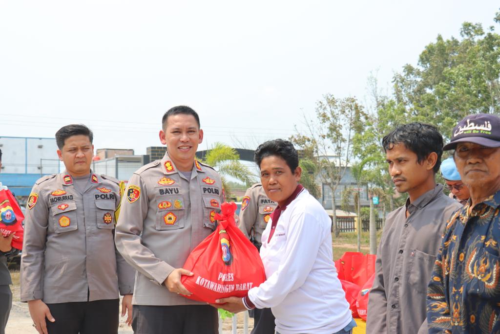 Kapolres Kobar Laksanakan Silaturahmi Dengan Warga Kec Pangkalan Banteng Kotawaringin Barat Sekaligus Salurkan Bansos Sembako