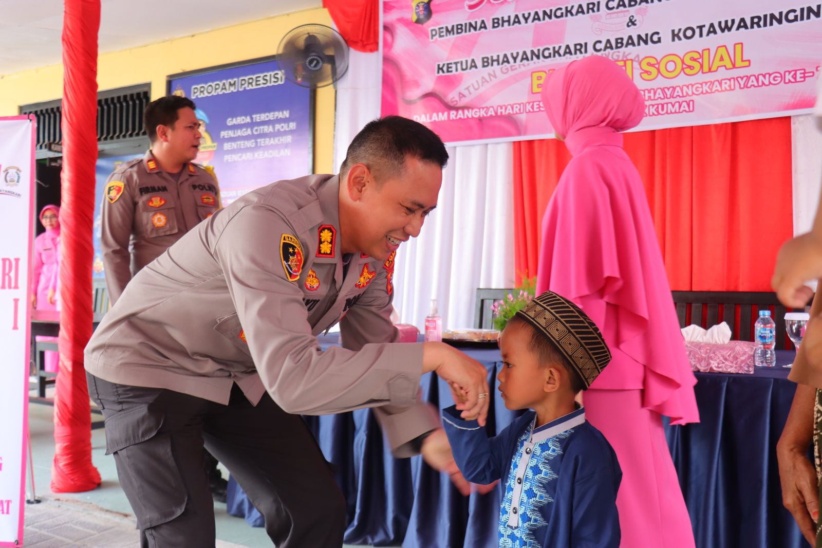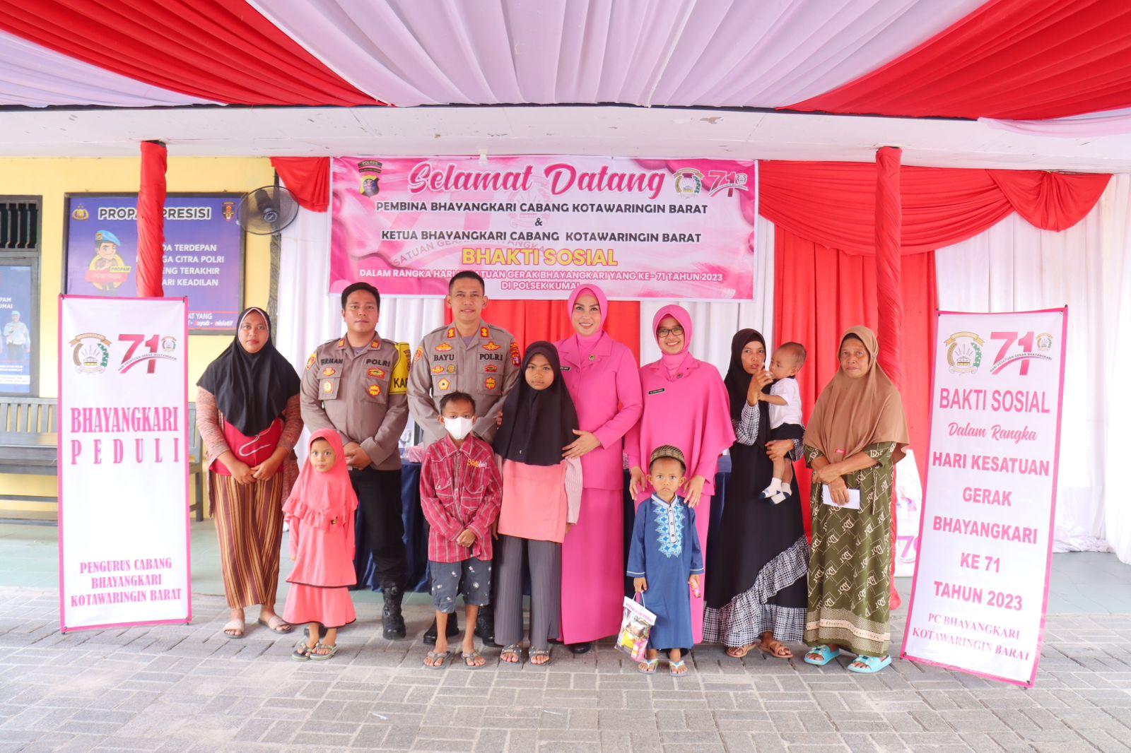 KOTAWARINGIN BARAT,ikagawanews.id – Kapolres Kotawaringin Barat AKBP Bayu Wicaksono,SH.,SIK.,M.Si bersama Ketua Bhayangkari Cabang Kotawaringin Barat Ny. Wina Bayu Wicaksono melaksanakan bakti sosial dalam rangka Hari Kesatuan Gerak Bhayangkari (HKGB) ke 71,Jumat 13 Oktober 2023 pukul 14.00 Wib di Polsek Kumai.
