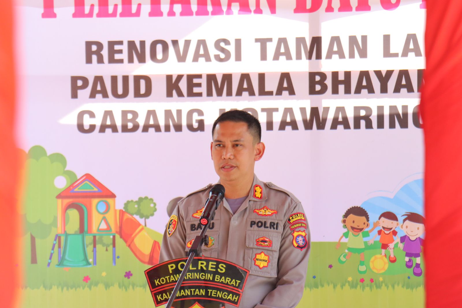Kapolres Kobar Lakukan Peletakan Batu Pertama Renovasi Taman Bermain Paud Terpadu Kemala Bhayangkari