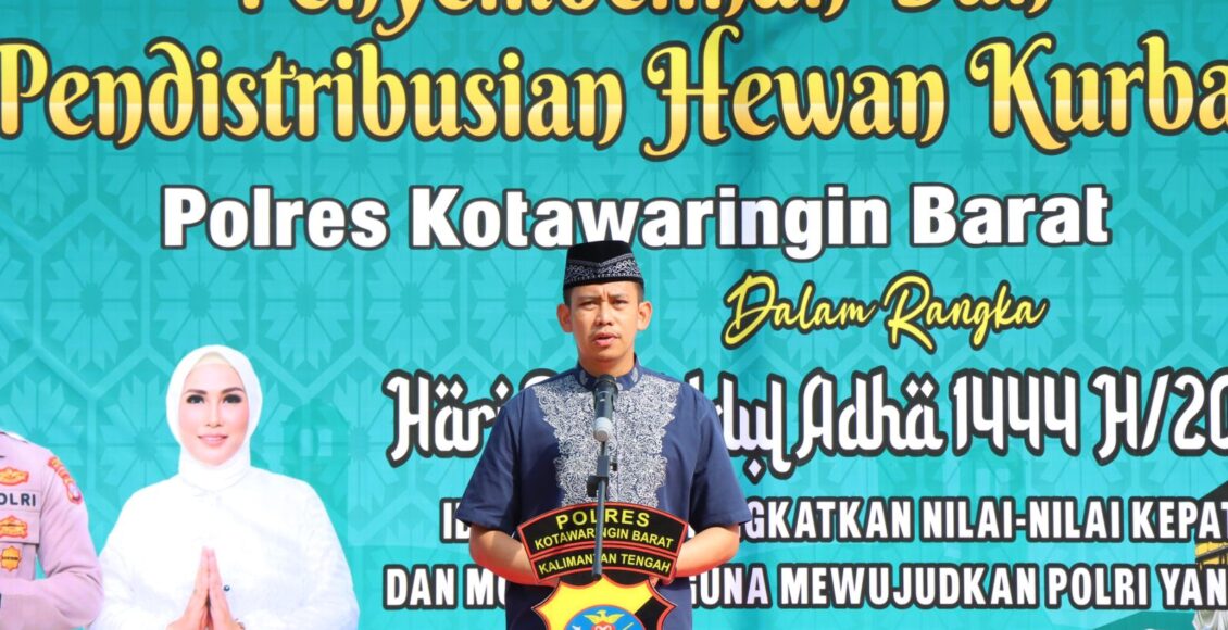 KOTAWARINGIN BARAT,ikagawanews.id – Kapolres Kotawaringin Barat AKBP Bayu Wicaksono, S.H.,S.I.K.,M.Si bersama Ketua Bhayangkari Cabang Kotawaringin Barat Ny. Wina Bayu Wicaksono, PJU, Perwira, Pengurus Bhayangkari dan anggota menghadiri kegiatan Penyembelihan Hewan Kurban serta Pendistribusian Daging Hewan Kurban,Kamis tanggal 29 Juni 2023 sekitar pukul 09.00 Wib di Lapangan Voli SINERGI.