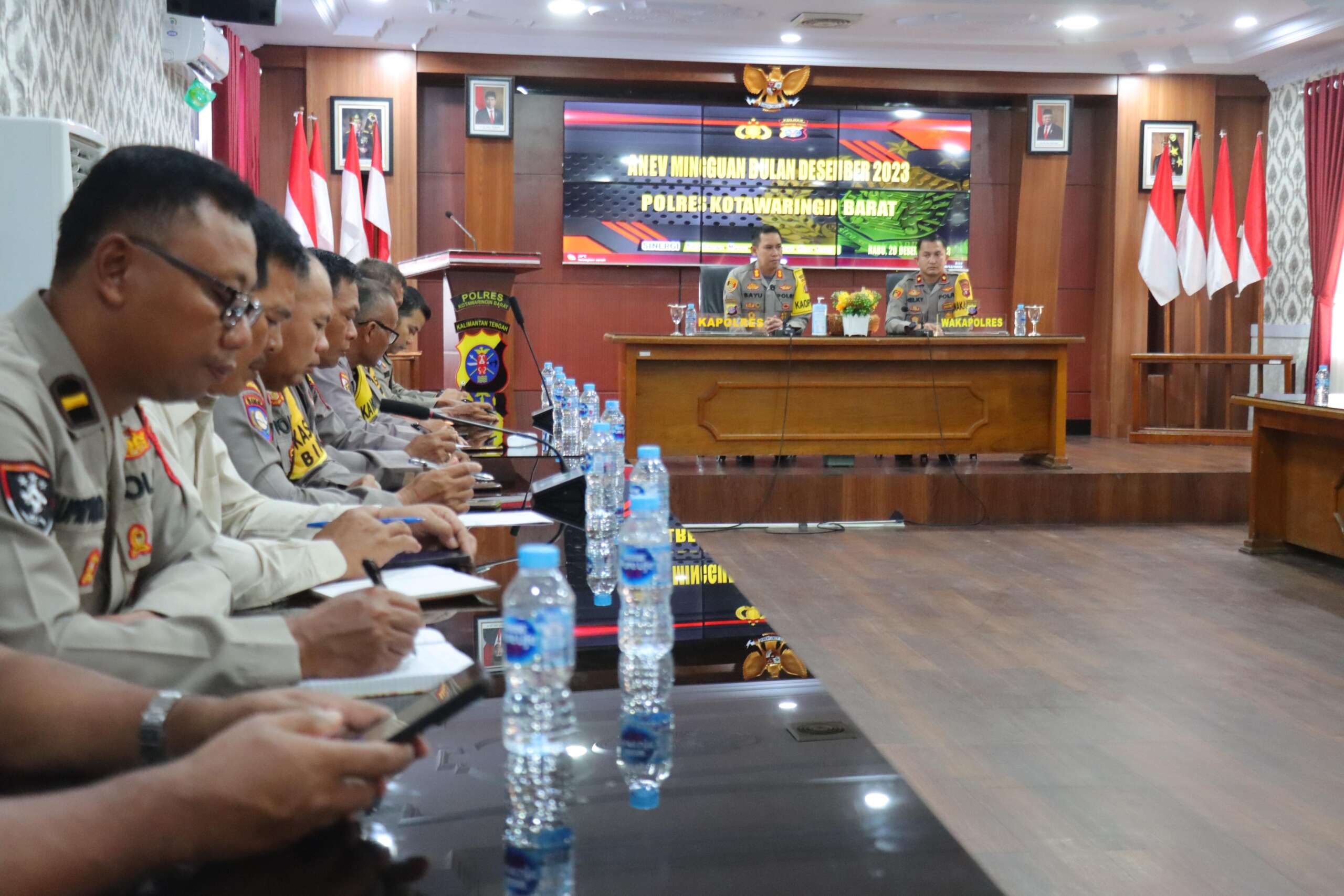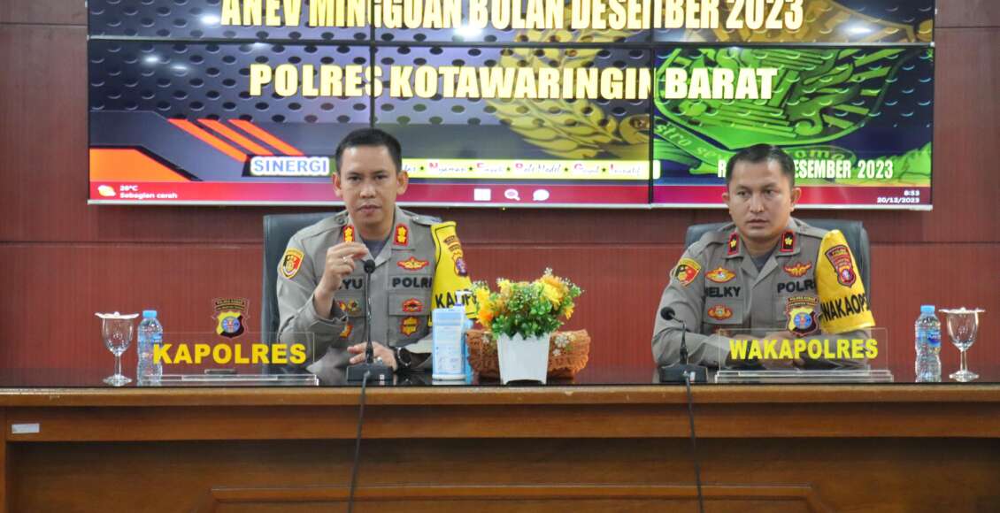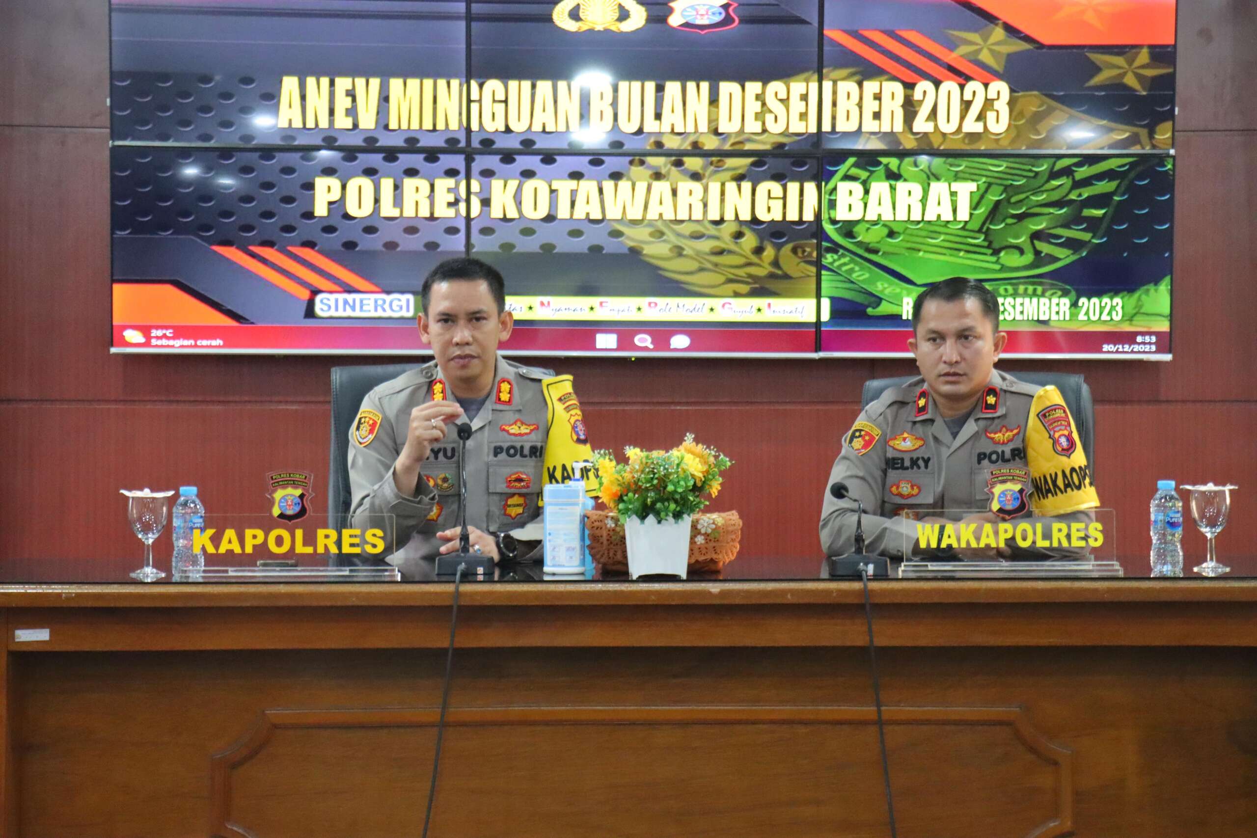 KOTAWARINGIN BARAT,ikagawanews.id – Kapolres Kotawaringin Barat AKBP Bayu Wicaksono,SH.,SIK.,M.Si didampingi Wakapolres memimpin Anev Mingguan,Rabu 20 Desember 2023 pukul 08.30 Wib di Aula Satya Haprabu.