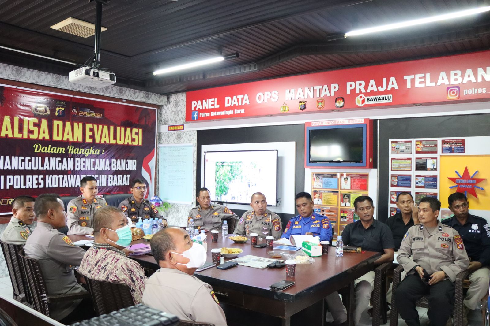 KOTAWARINGIN BARAT,ikagawanews.id – Kapolres Kotawaringin Barat AKBP Bayu Wicaksono, S.H., S.I.K., M.Si memimpin anev mitigasi banjir yang dilaksanakan oleh Polres Kotawaringin Barat dan jajaran di Posko Crisis Center Polres Kotawaringin Barat,Selasa 1 Nopember 2022.