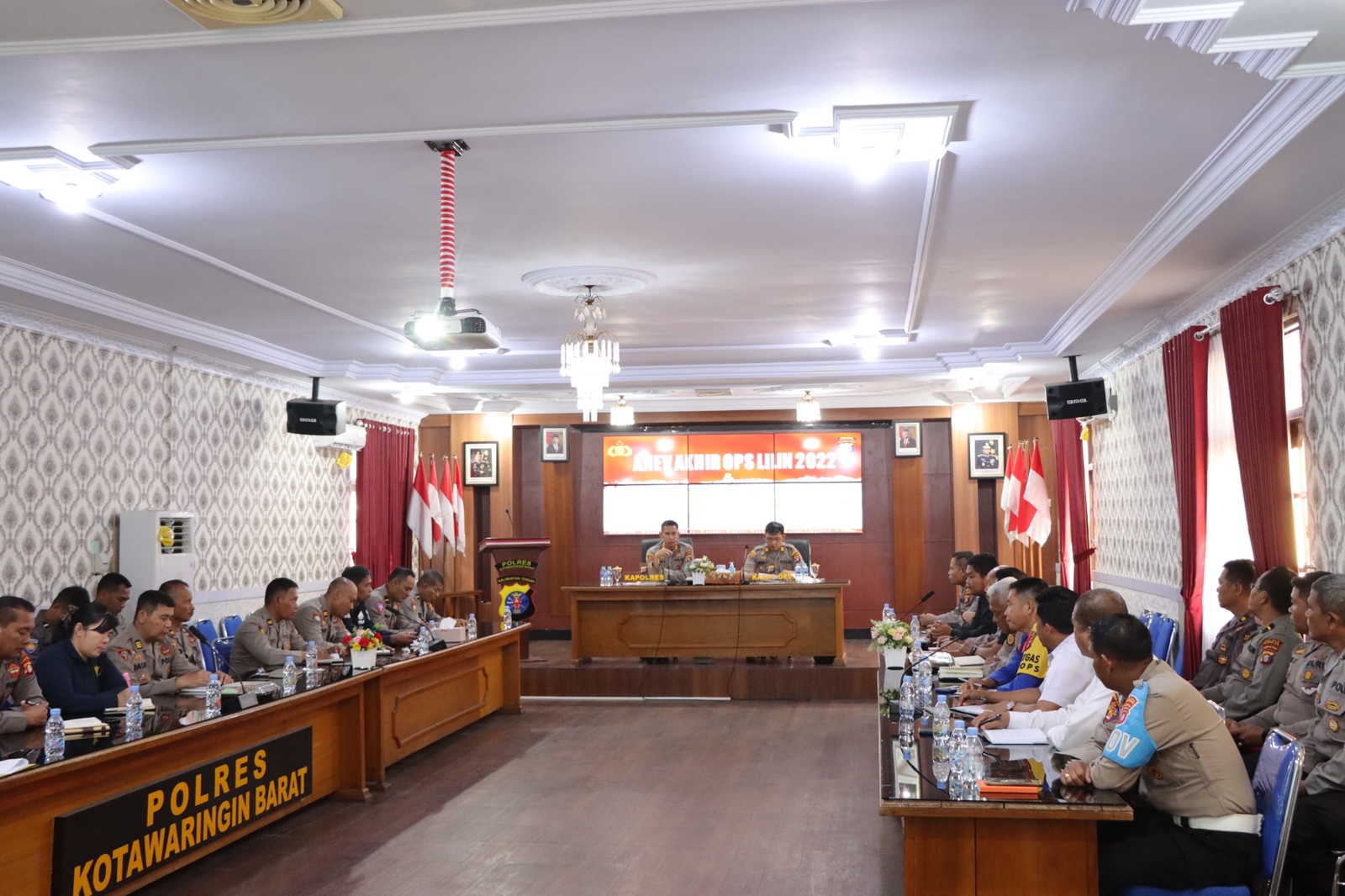 KOTAWARINGIN BARAT,ikagawanews.id – Kapolres Kotawaringin Barat AKBP Bayu Wicaksono, SH,SIK.,M.Si memimpin anev Ops Lilin Th 2022 yang diikuti oleh Para Pejabat Operasi dan anggota di Aula Satya Haprabu,Selasa 3 Januari 2023.