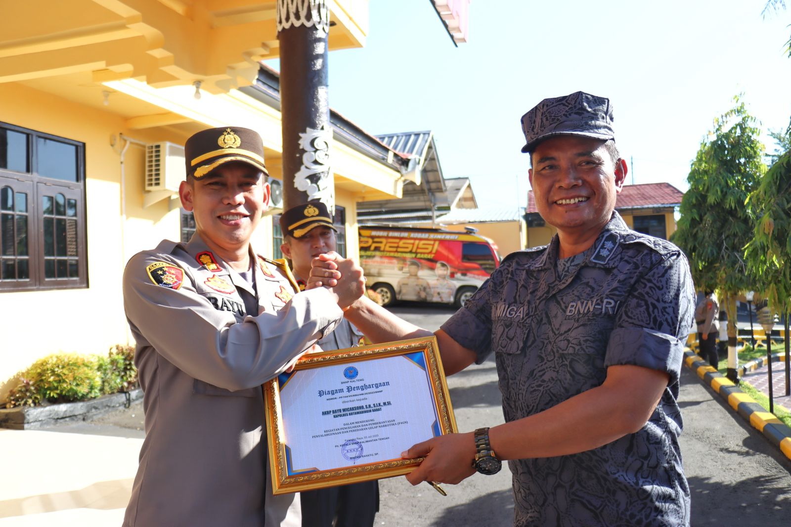 Kapolres Kotawaringin Barat AKBP Bayu Wicaksono, SH. SIK. MSi mengatakan bahwa Penghargaan tersebut diberikan bukan sekonyong-konyong diberikan begitu saja, namun melalui tahapan-tahapan pertimbangan ditingkat Provinsi dalam hal P4GN diantanya pengungkapan dan pencegahan Peredaran Narkotika diwilkum Kotawaringin Barat.