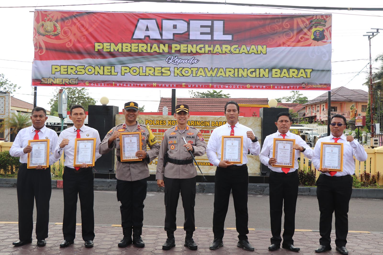 Adapun Personel Polres Kobar yang mendapatkan penghargaan berjumlah 6 Orang, diantaranya AKP Angga Yuli Hermanto, S.I.K., IPDA L.K. Sembiring, S.Pd., IPDA Agung Sugiarto, S.H., AIPTU Supomo, S.H., AIPDA Trimanto, S.H. Dan AIPDA Sony Henry K, S.H.