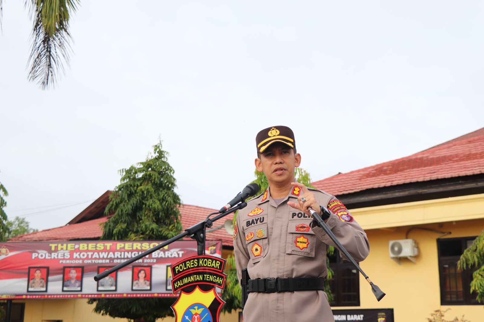 Apel yang dipimpin oleh Kapolres Kotawaringin Barat AKBP Bayu Wicaksono, S.H., S.I.K., M.Si., ini diikuti oleh seluruh PJU, perwira serta personel Polres Kotawaringin Barat.