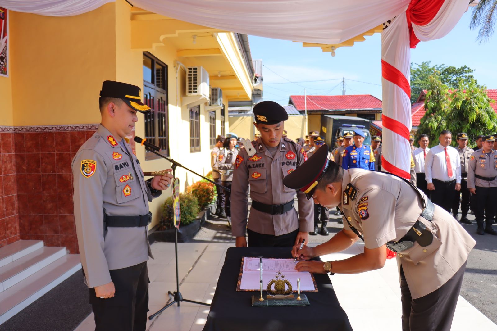 Kapolres Kobar Pimpin Apel Penyerahan Tugas Dan Tanggung Jawab Jabatan Kasat Intelkam Polres Kotawaringin Barat