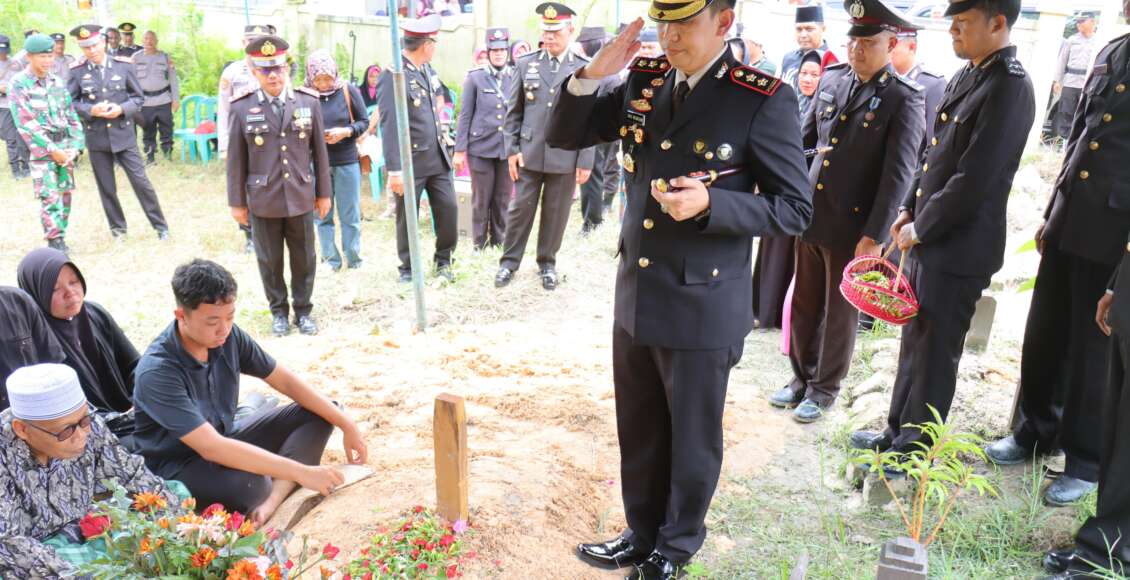 “Almarhum merupakan sosok anggota yang memiliki dedikasi tinggi dan bertanggung jawab sebagai Bhabinkamtibmas Kelurahan Baru, tuntas sudah pengabdiannya sebagai Prajurit Bhayangkara kepada Ibu Pertiwi” ucap Bayu dalam amanatnya.