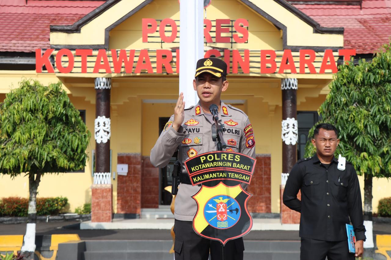 Kapolres Kotawaringin Barat AKBP Bayu Wicaksono,SH.,SIK.,M.Si memimpin apel jam pimpinan di Lapangan Presisi,Rabu 2 Oktober 2022.
