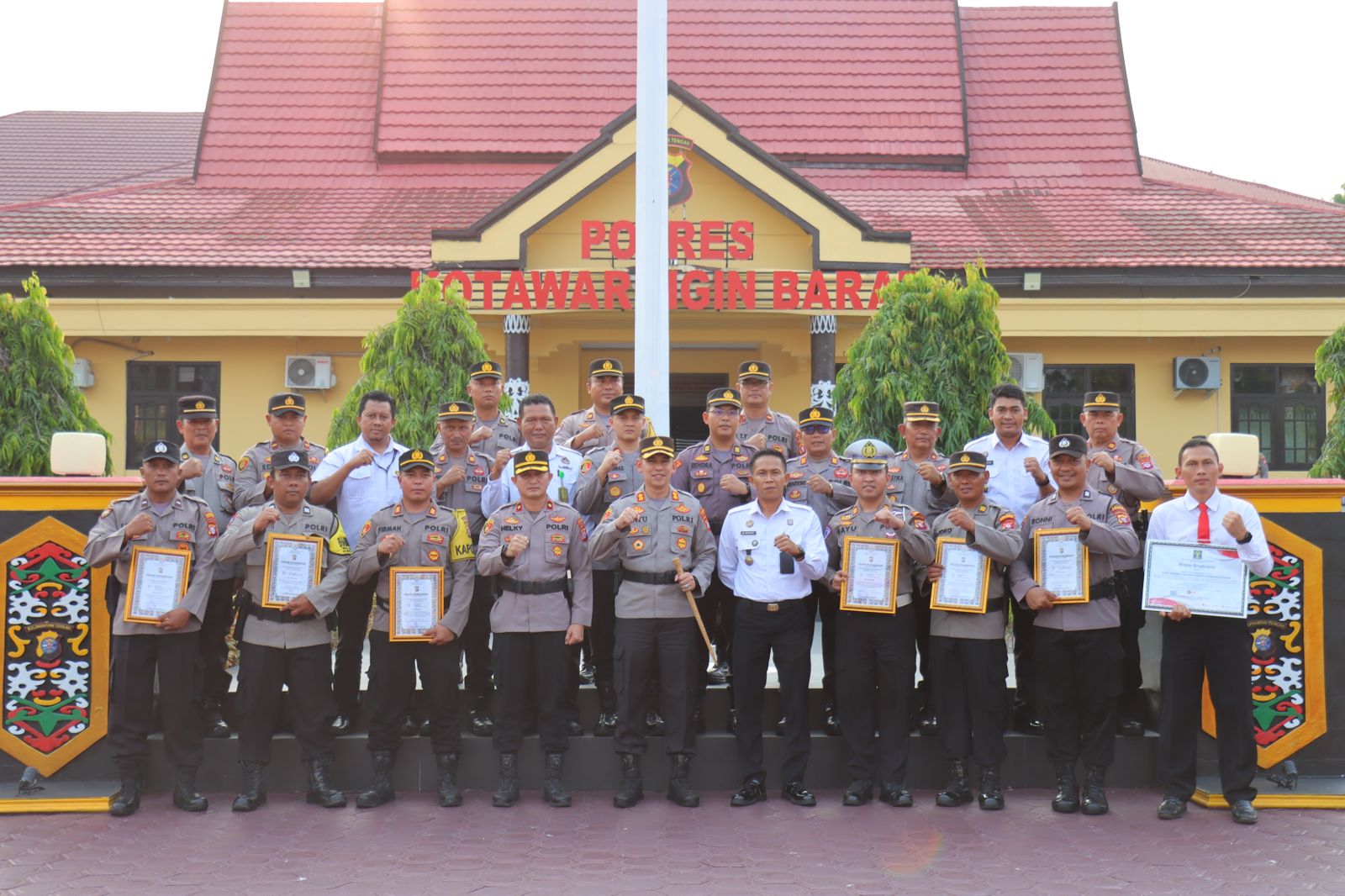 Kapolres Kotawaringin Barat AKBP Bayu Wicaksono, S.H., S.I.K., M.Si. menyerahkan langsung piagam penghargaan tersebut atas dedikasi personel Polres Kotawaringin Barat dalam memberikan kontribusi positif kepada masyarakat dan Instansi Polri.(Red/Hum)