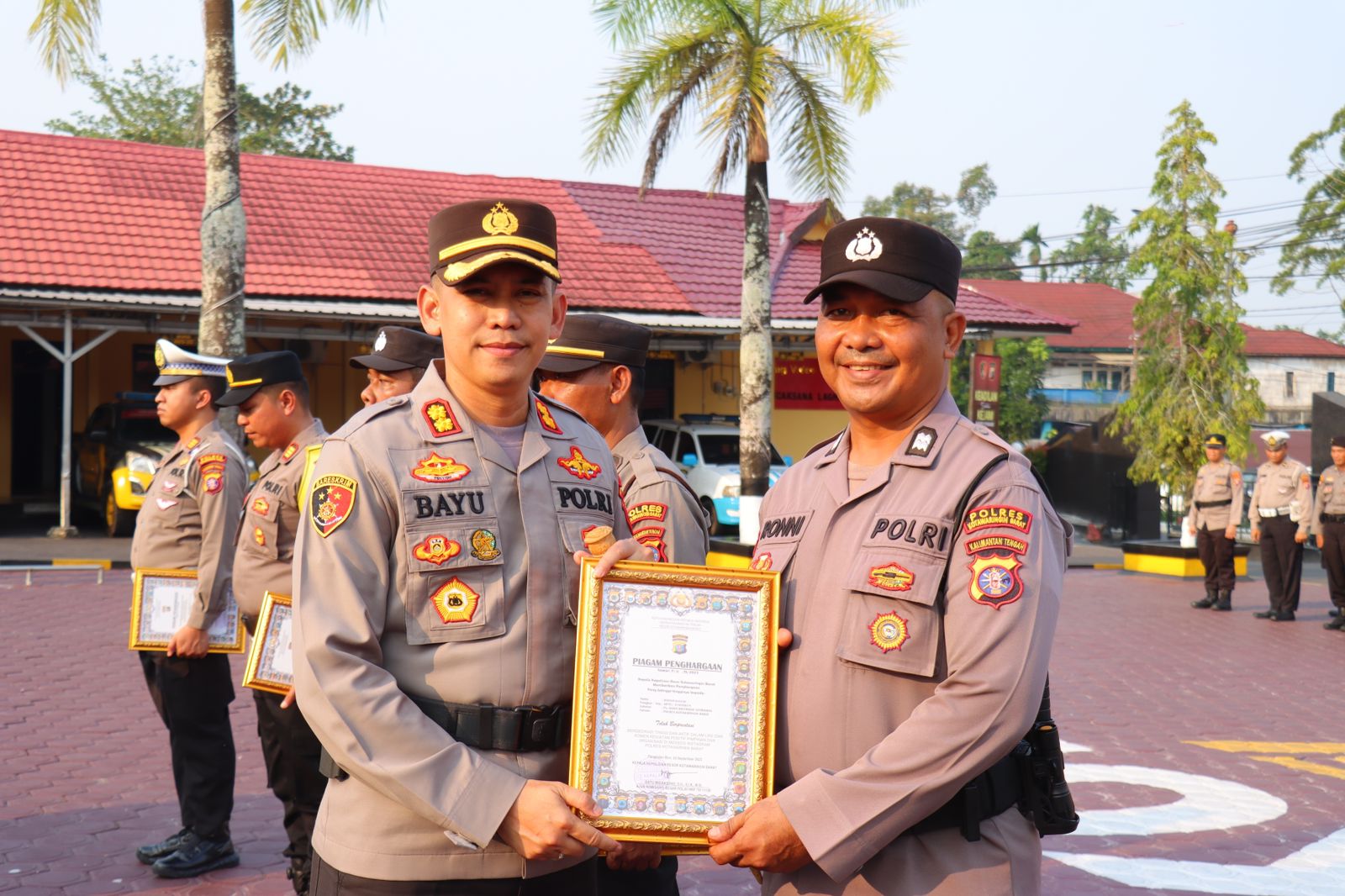 Kapolres Kotawaringin Barat AKBP Bayu Wicaksono, S.H., S.I.K., M.Si. menyerahkan langsung piagam penghargaan tersebut atas dedikasi personel Polres Kotawaringin Barat dalam memberikan kontribusi positif kepada masyarakat dan Instansi Polri.(Red/Hum)