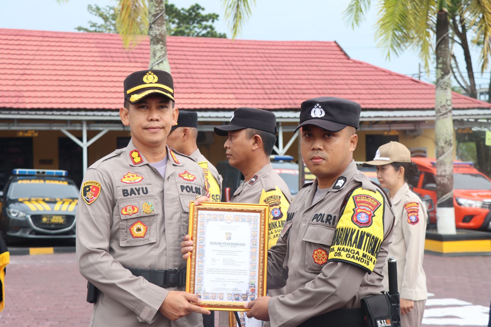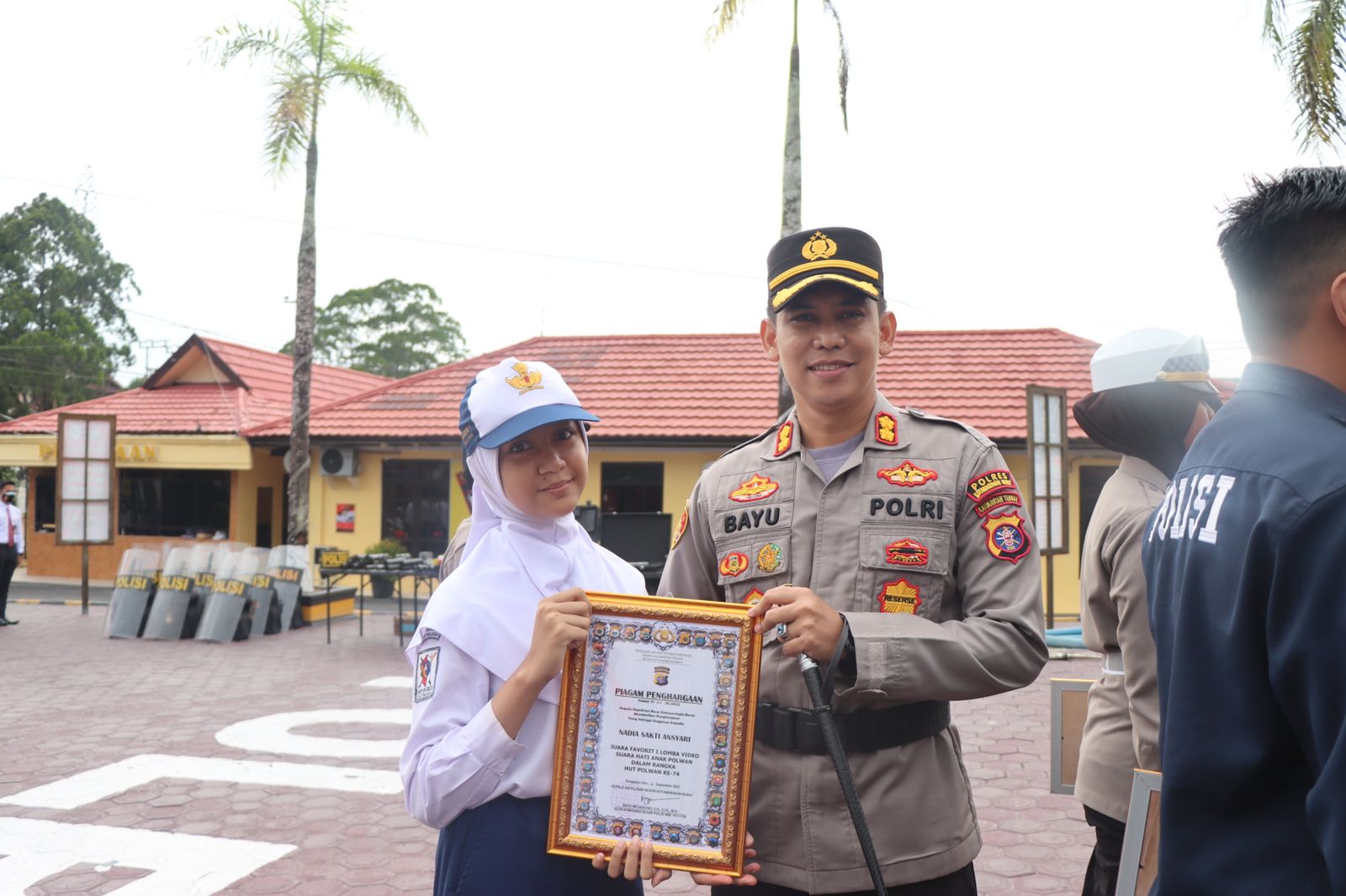 Kapolres Kobar Pimpin Langsung Apel Penyerahan Piagam Penghargaan Kepada Personel dan Siswi Berprestasi