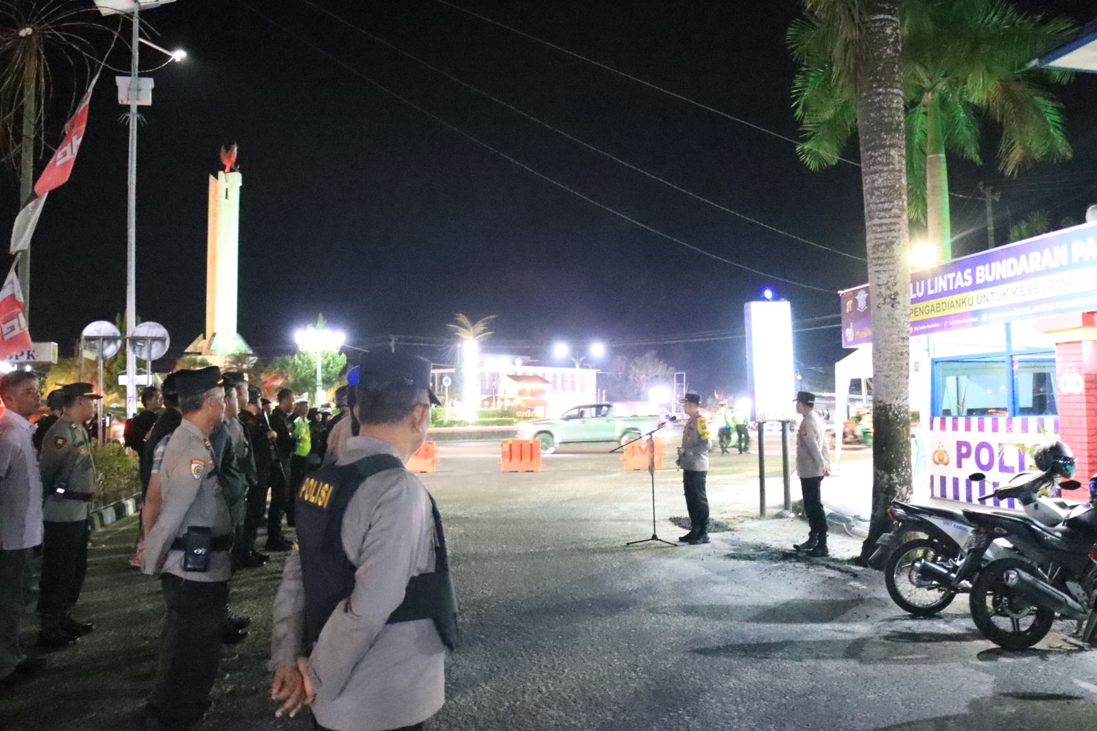 Kapolres Kobar Pimpin Langsung Giat Apel Pengamanan Konser Deny Caknan di lapangan sepak bola lanud