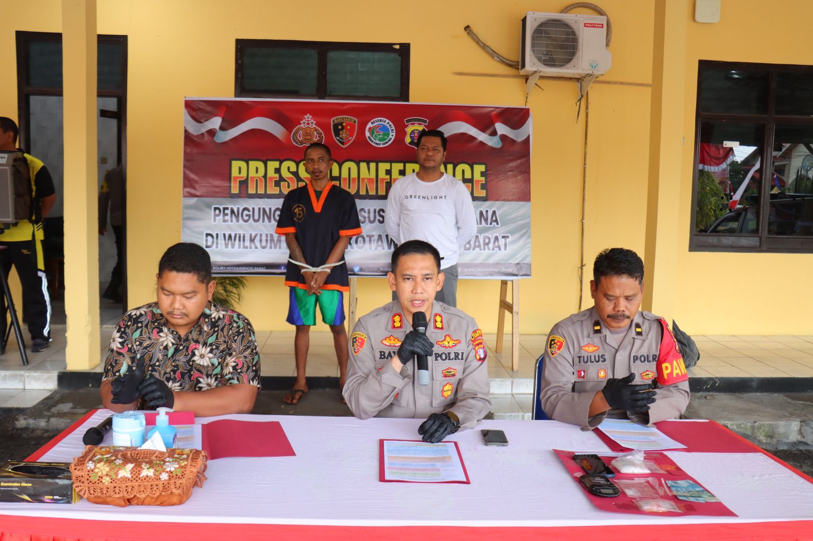 KOTAWARINGIN BARAT,ikagawanews.id – Kapolres Kotawaringin Barat AKBP Bayu Wicaksono, S.H., S.I.K., M.Si didampingi Kasatresnarkoba dan Kapolsek Kumai secara bergantian melaksanakan Konfrensi Pers pengungkapan perkara TP Pencurian Dengan Kekerasan dan TP Narkotika.,Sabtu 26 Agustus 2023 sekira jam 10.00 WIB di Mapolres.