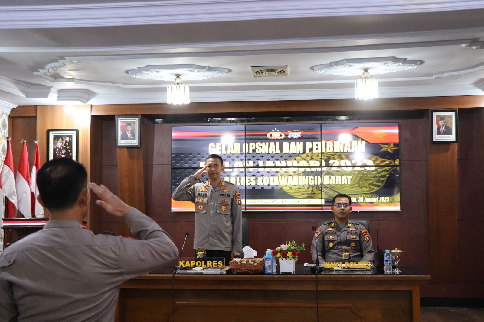 KOTAWARINGIN BARAT,ikagawanews.id – Kapolres Kotawaringin Barat AKBP Bayu Wicaksono, S.H., S.I.K.,M.Si memimpin pelaksanaan Gelar Oprasional Bulan Januari Tahun 2023 di Aula Satya Haprabu Polres Kotawaringin Barat,Senin tanggal 30 Januari 2023,
