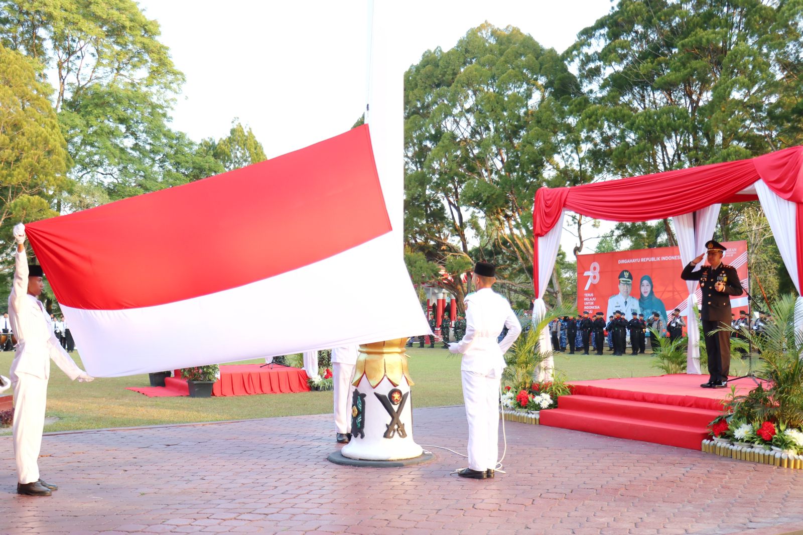 Kapolres Kobar Pimpin Langsung Upacara Penurunan Bendera Merah Putih di Kantor Bupati Kotawaringin Barat