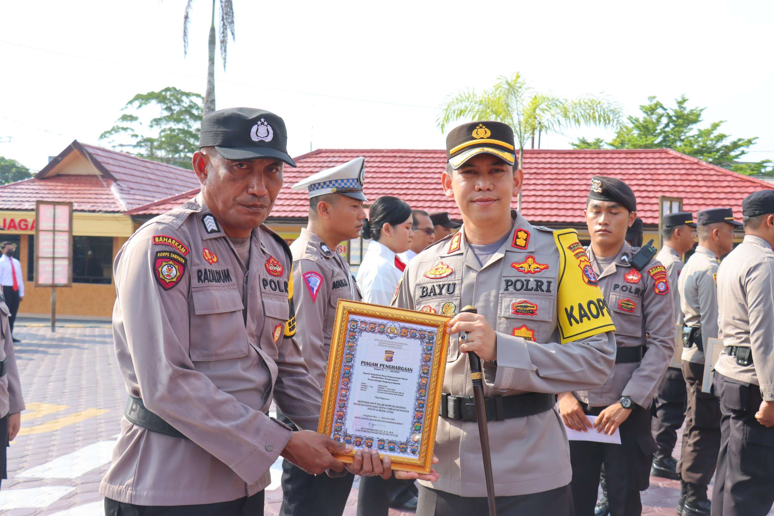 Personel Polres Kotawaringin Barat yang mendapatkan Piagam Penghargaan sebanyak 17 orang terdiri dari Personel Polres dan Polsek jajaran Polres Kotawaringin Barat. Dan 2 Polsek yaitu Polsek Kumai dan Polsek Pangkalan Banteng jajaran Polres Kotawaringin Barat.