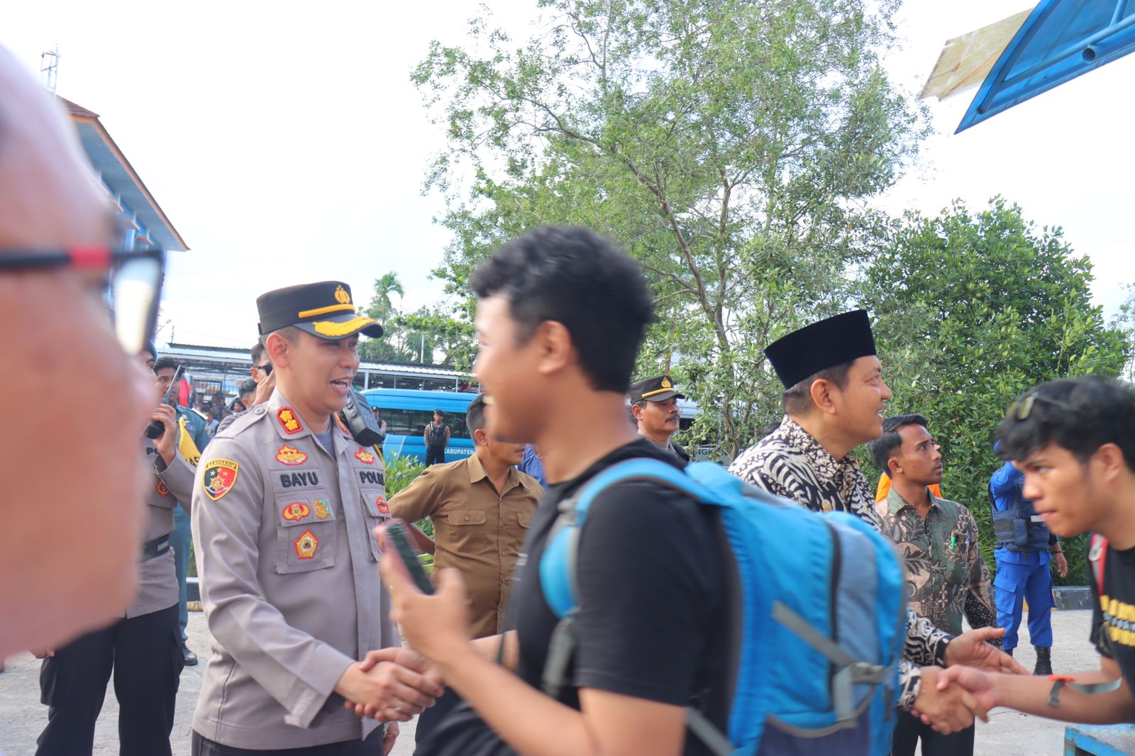 Kapolres Kobar Pimpin Pengamanan Kedatangan Rombongan HMI Transit Menuju Kalimantan Barat Yang Akan Mengikuti Munas HMI di Pontianak