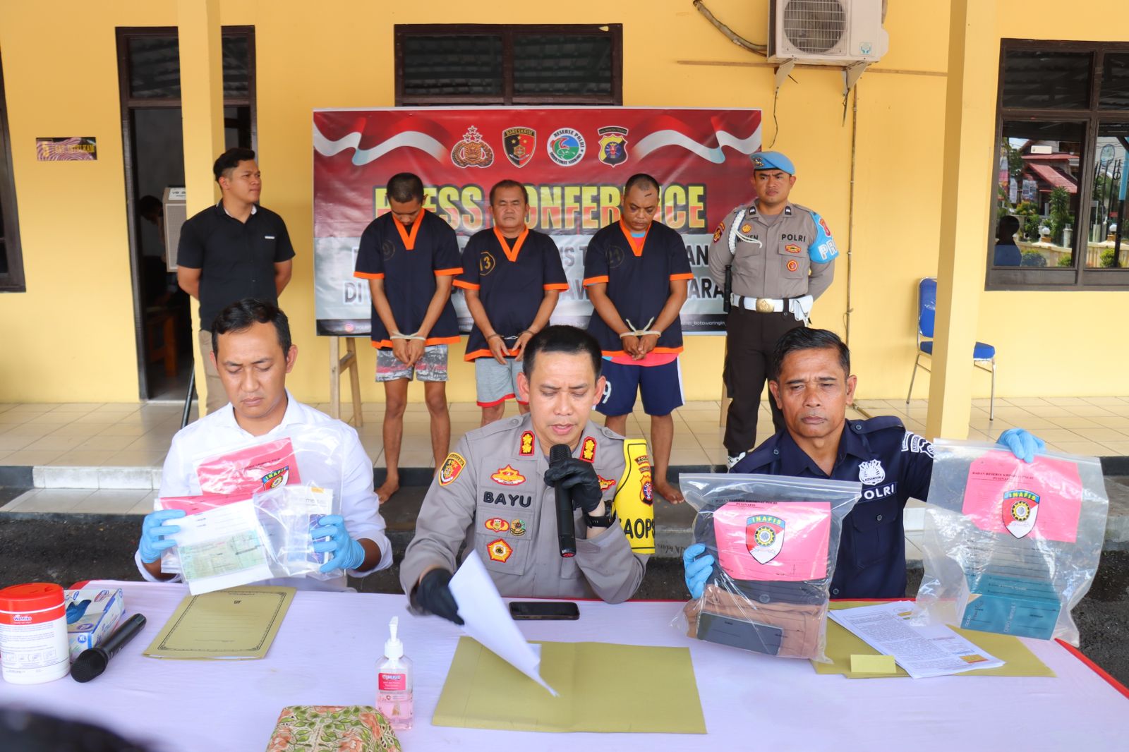 Dalam kegiatan Press Conference tersebut dipimpin langsung oleh Kapolres Kotawaringin Barat AKBP Bayu Wicaksono, SH., SIK., MSi., didampingi oleh Kasihumas Iptu Paindoan Siregar, S.Sos, Kasat Narkoba Iptu Wira Wisudawan, Strk, dan Kasat Reskrim AKP Yoga Panji Prasetya, S.I.K