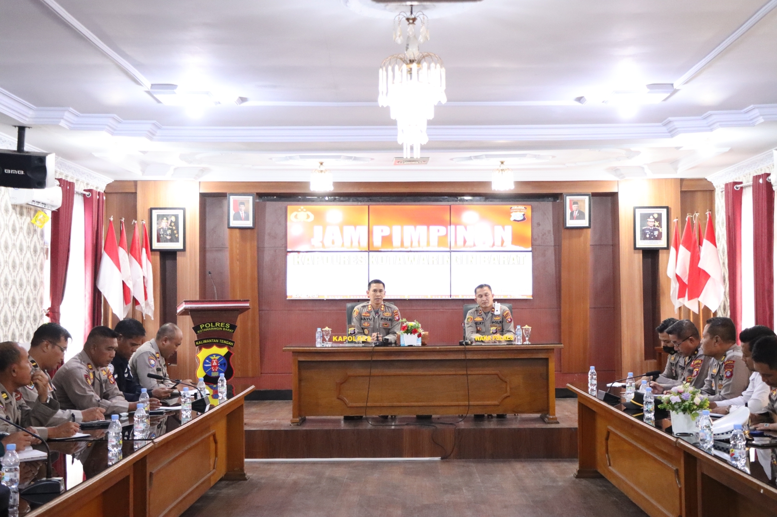 KOTAWARINGIN BARAT,ikagawanews.id – Kapolres Kotawaringin Barat AKBP Bayu Wicaksono, SH,SIK.,M.Si memimpin rapat yang diikuti oleh Wakapolres, Pejabat Utama dan Seluruh Perwira di Aula Satya HaprabuRabu 11 Januari 2023.