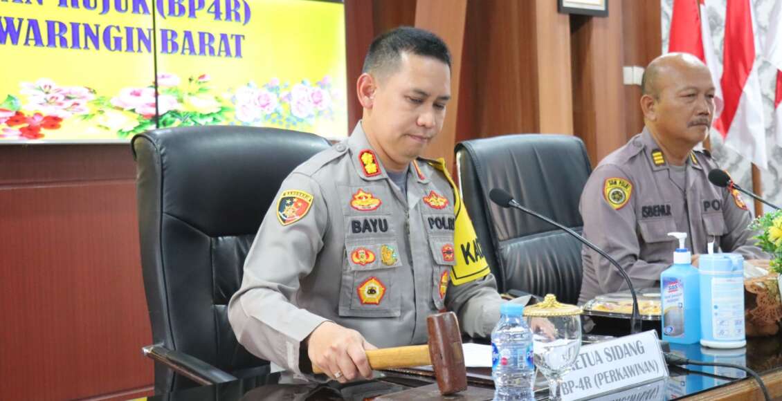 KOTAWARINGIN BARAT,ikagawanews.id – Kapolres Kotawaringin Barat AKBP Bayu Wicaksono, S.H., S.I.K., M.Si. memimpin pelaksanaan sidang BP4R personel Polres Kotawaringin Barat Iptu P. Joko Supriyanto dan Aiptu Suryanto,Sabtu 11 Nopember 2023 di Aula Satyahaprabu Polres Kotawaringin Barat.
