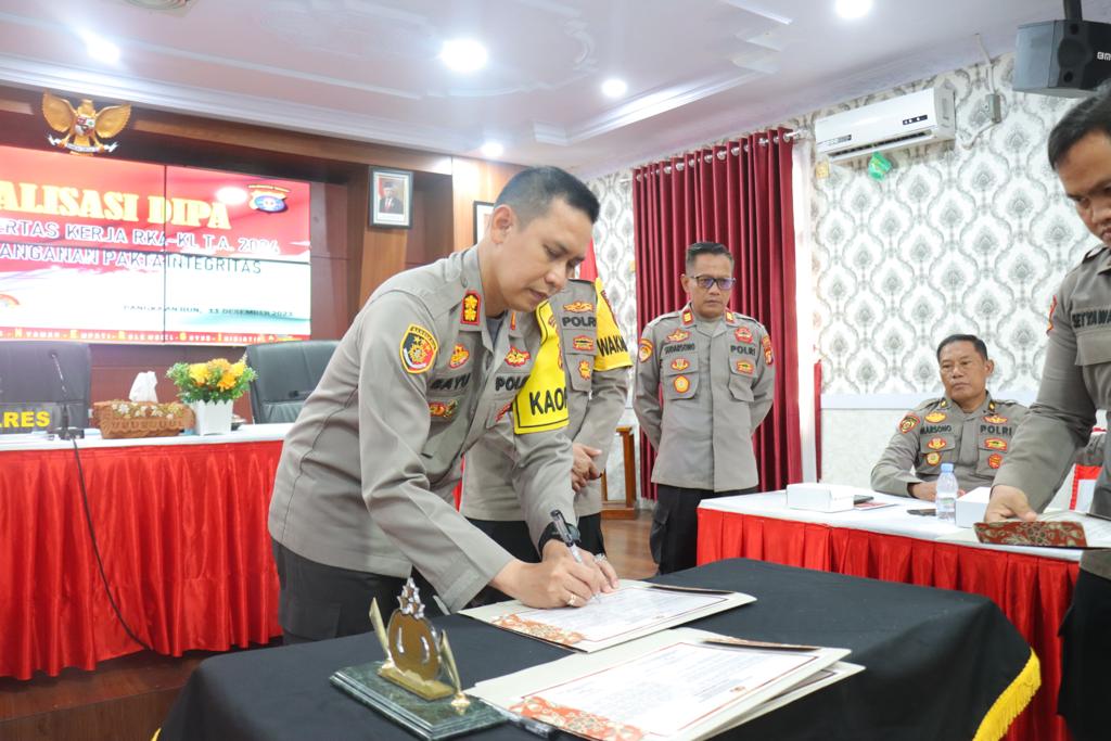 Kapolres Kobar Pimpin Sosialisasi DIPA Penyerahan Kertas Kerja RKA – KL T.A. 2024 Dan Penandatanganan Pakta Integritas