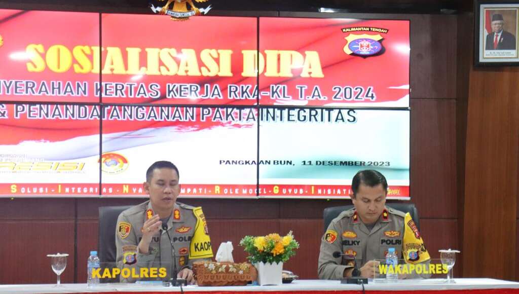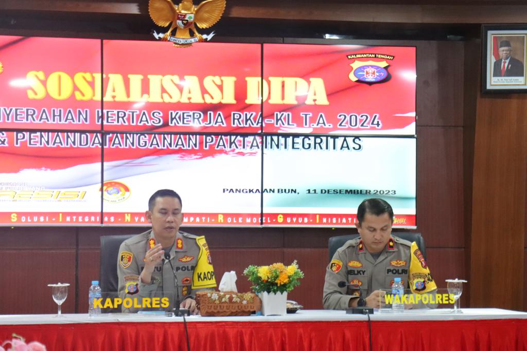 KOTAWARINGIN BARAT,ikagawanews.id – Polres Kobar telah melaksanakan kegiatan Sosialisasi DIPA penyerahan kertas kerja RKA – KL T.A. 2024 dan penandatanganan pakta integritas,Senin 11 Desember 2023 sekira jam 08.30 WIB bertempat di Aula Satya Haprabu Polres Kotawaringin Barat.