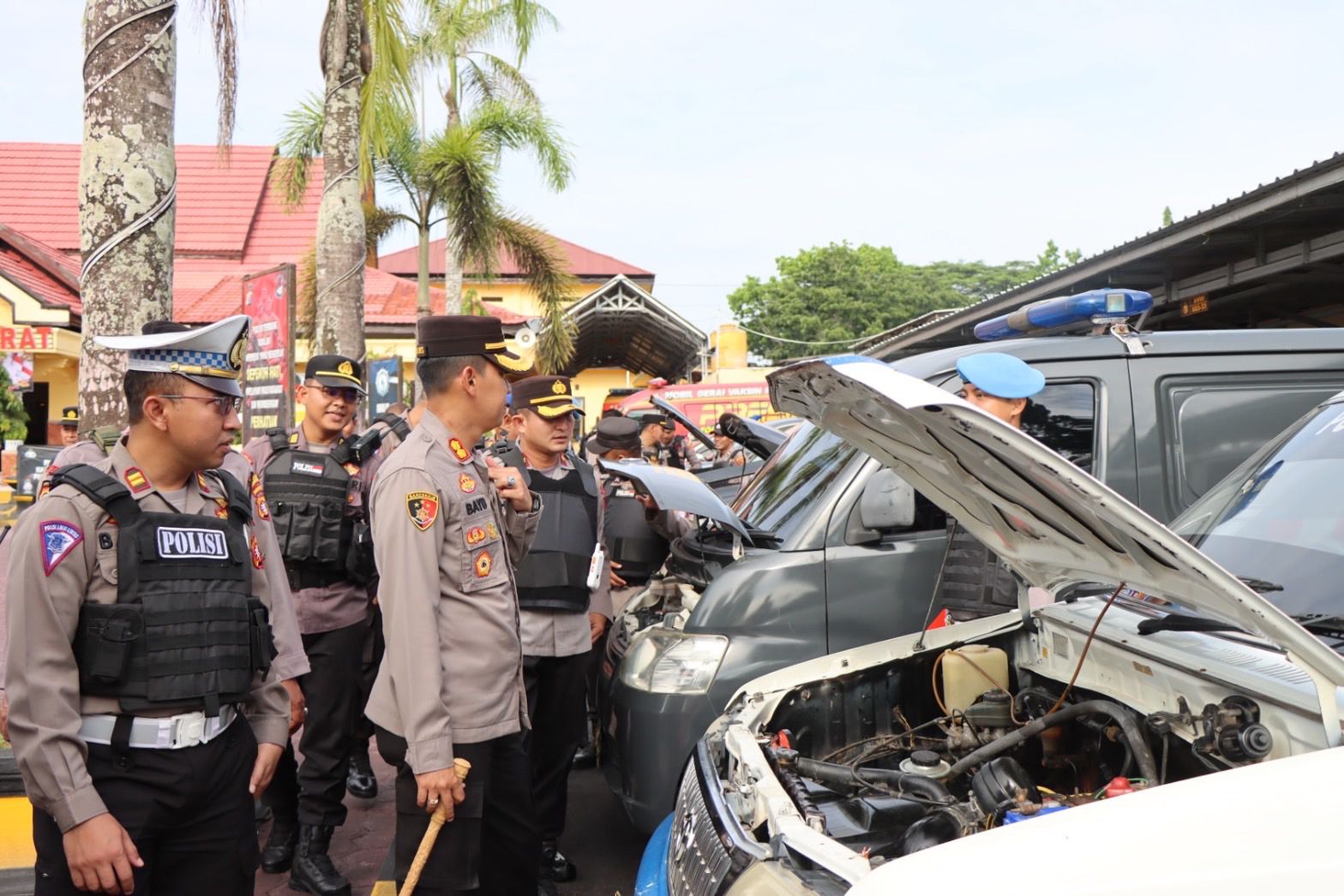 Kegiatan apel sarpras ini diakhiri dengan pengecekan oleh Kapolres bersama PJU.