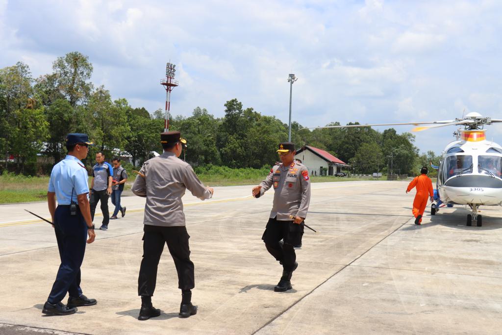 Kedatangan Bapak Kapolda kali ini adalah dalam rangka patroli udara untuk meninjau kebakaran hutan dan lahan (Karhutla) di wilayah Kotawaringin atau Provinsi Kalteng bagian Barat dengan menggunakan Helikopter.
