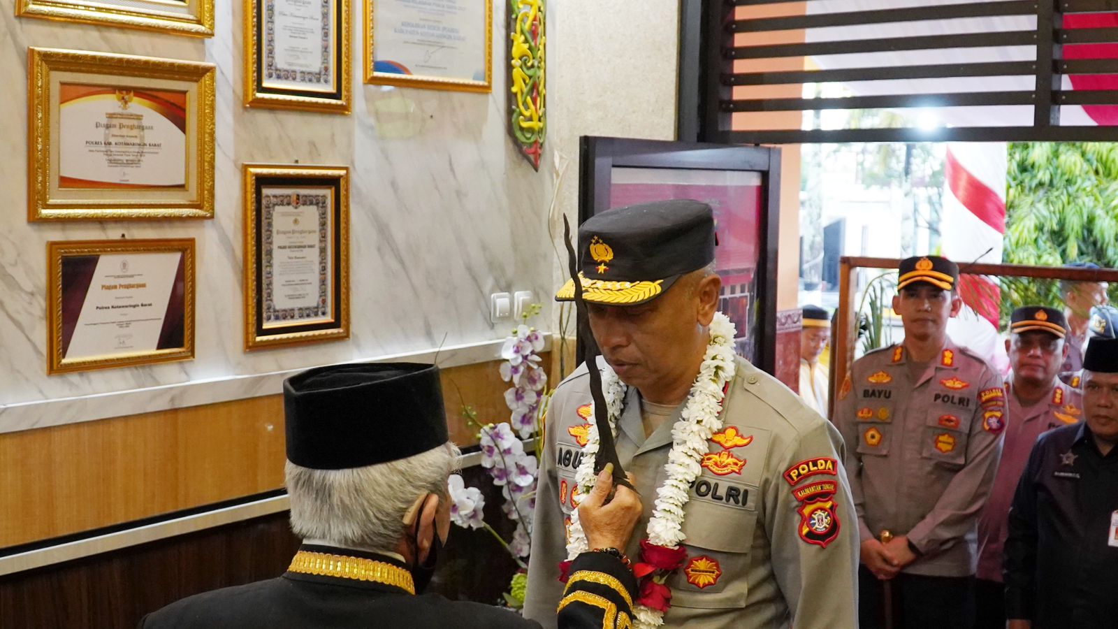 Dalam kegiatan ini, Kapolres Kotawaringin Barat AKBP Bayu Wicaksono, SH,SIK.,M.Si terlebih dahulu menyambut kedatangan beliau sebagai pejabat baru beserta rombongan untuk selanjutnya dilakukan penyambutan / prosesi adat melayu dari Kesultanan Kutaringin yang dipimpin langsung oleh Pangeran Muasjidinsyah sebagai Menteri Luar Kesultanan Kutaringin mulai dari Rumpak Kutamara, Tampung Tawar dan Doa Selamat.
